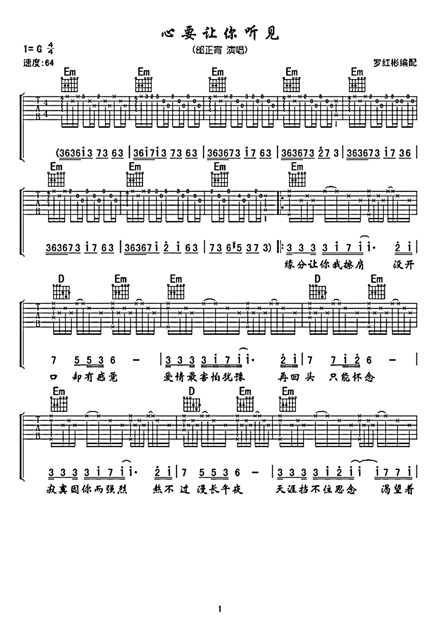 当前位置:琴谱网>吉他弹唱>心要让你听见