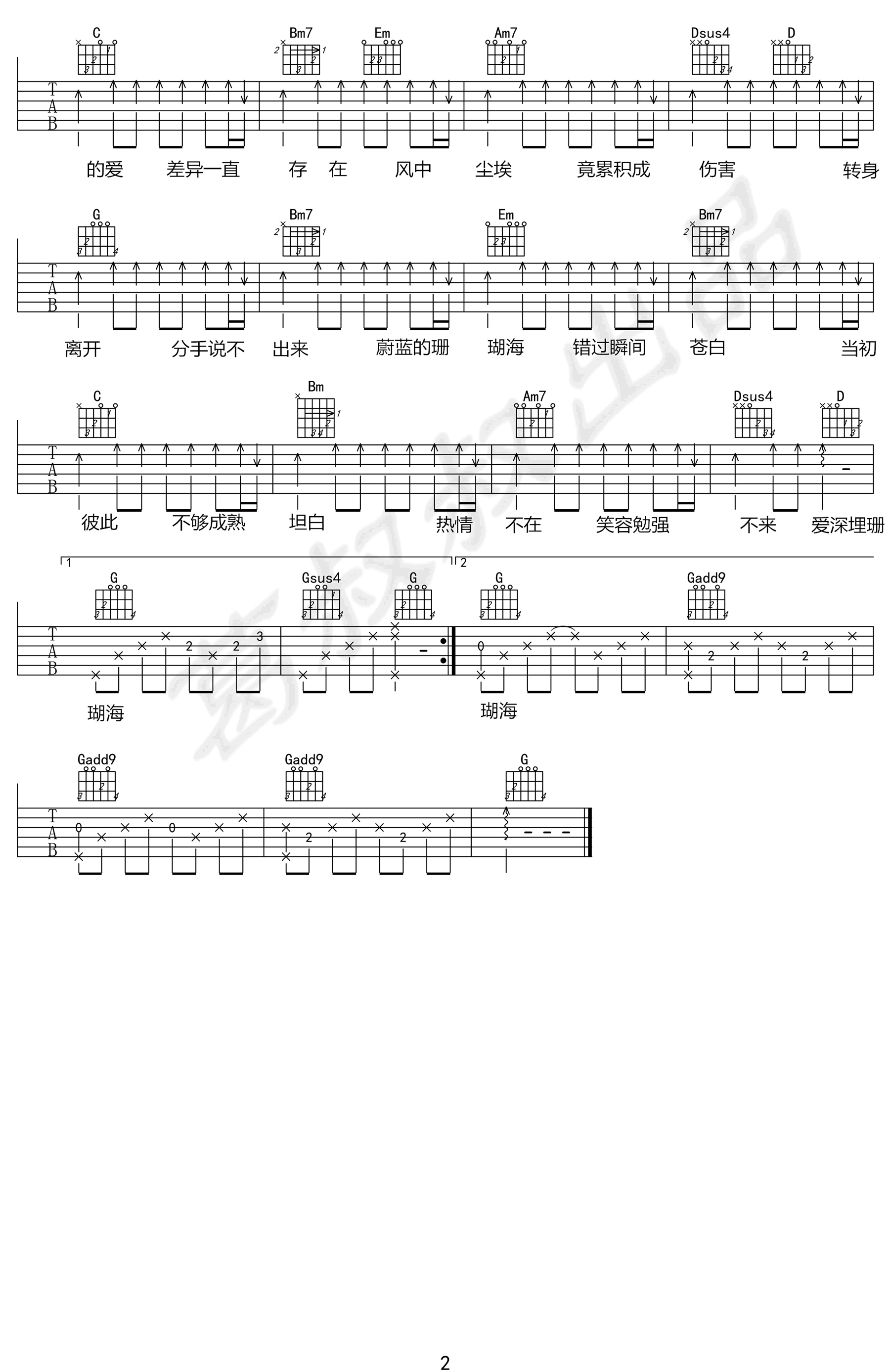 当前位置:琴谱网>吉他弹唱>珊瑚海