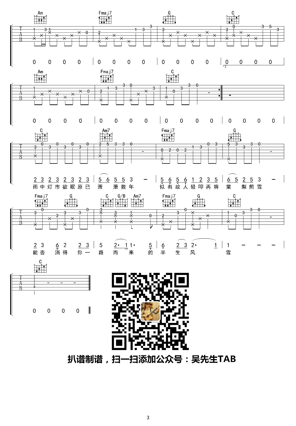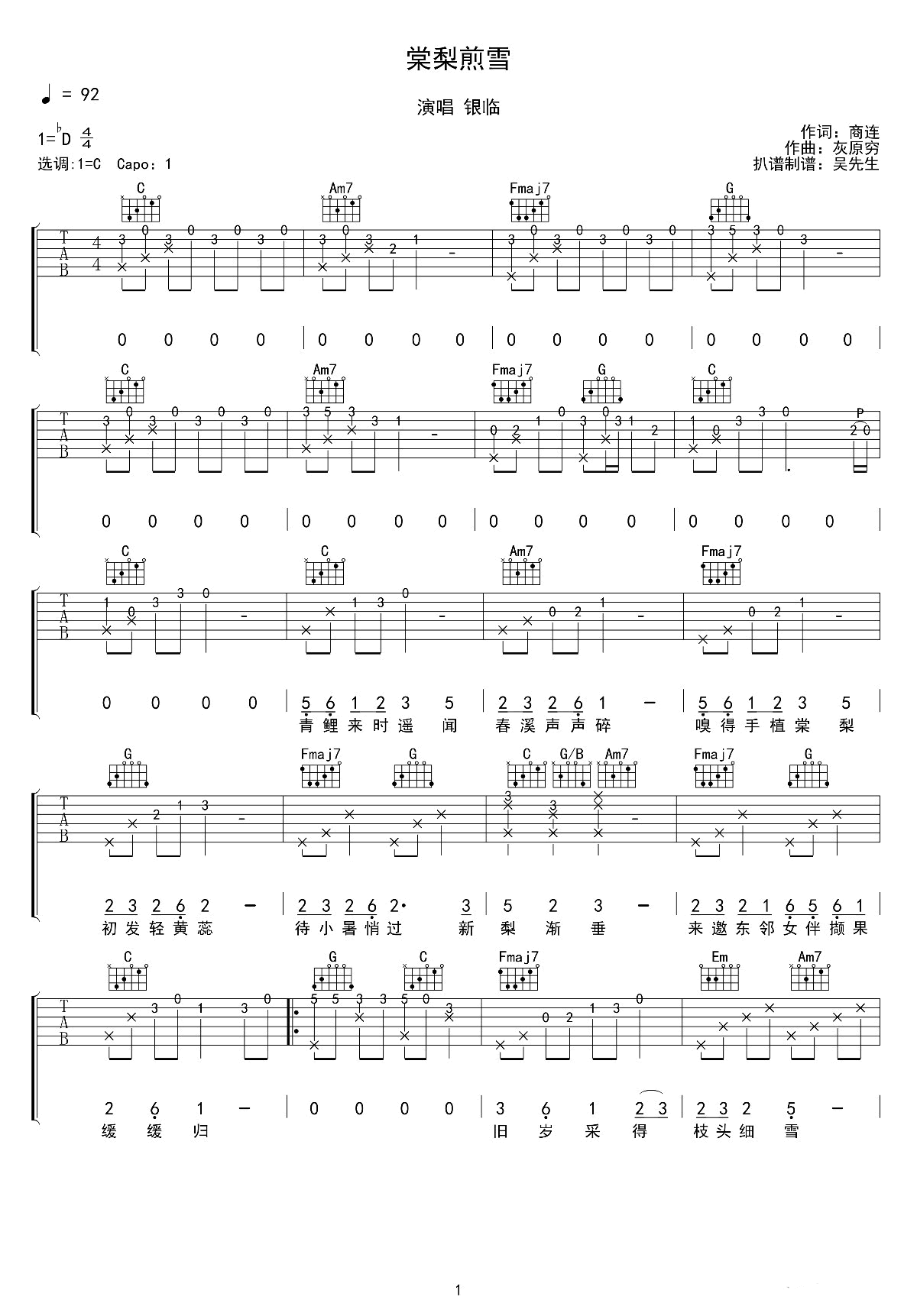 曲谱介绍: 银临《棠梨煎雪》吉他弹唱谱,采用D调指法编配,共有3张高清图谱。