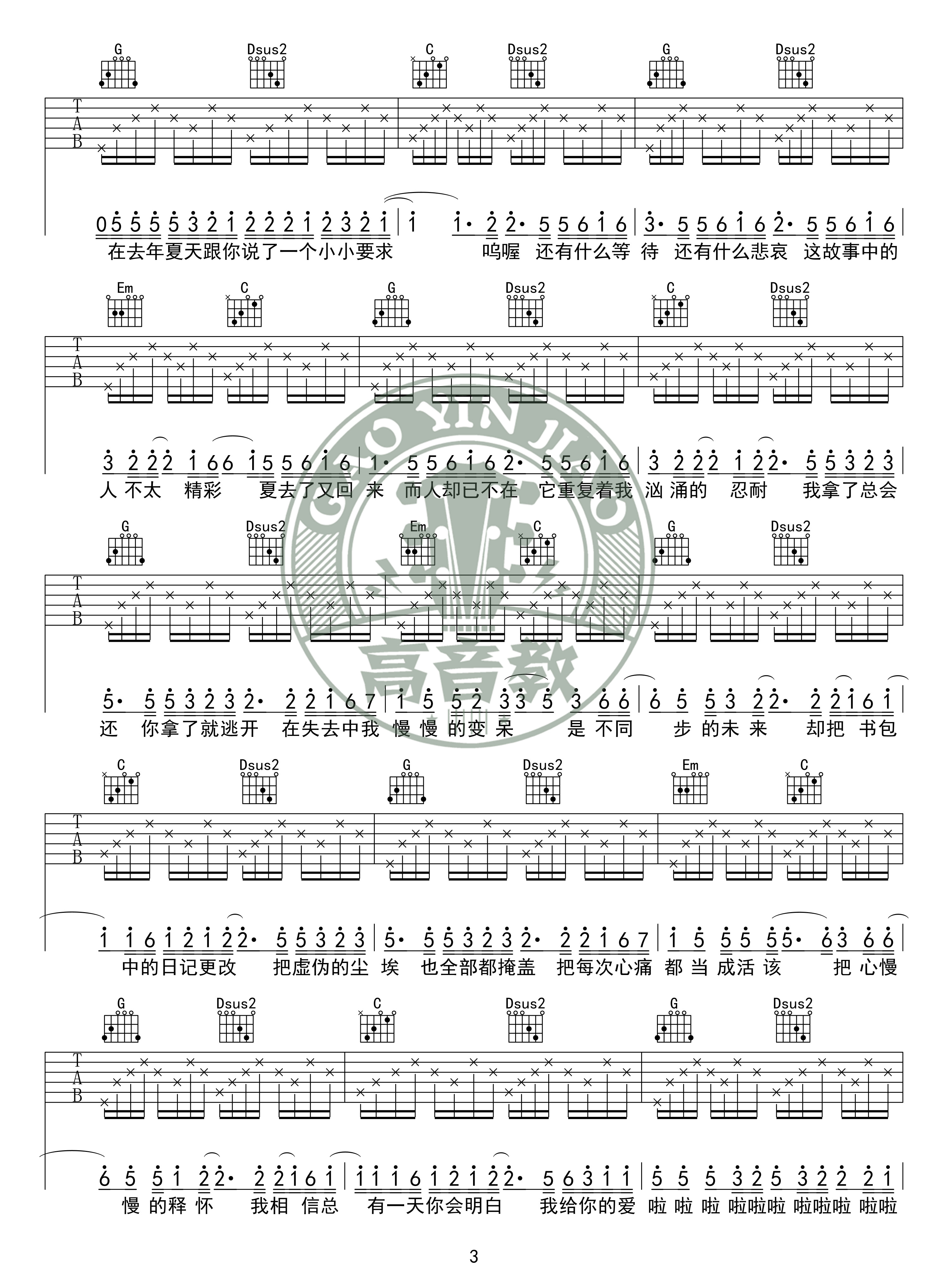 当前位置:琴谱网>吉他弹唱>去年夏天 入门版