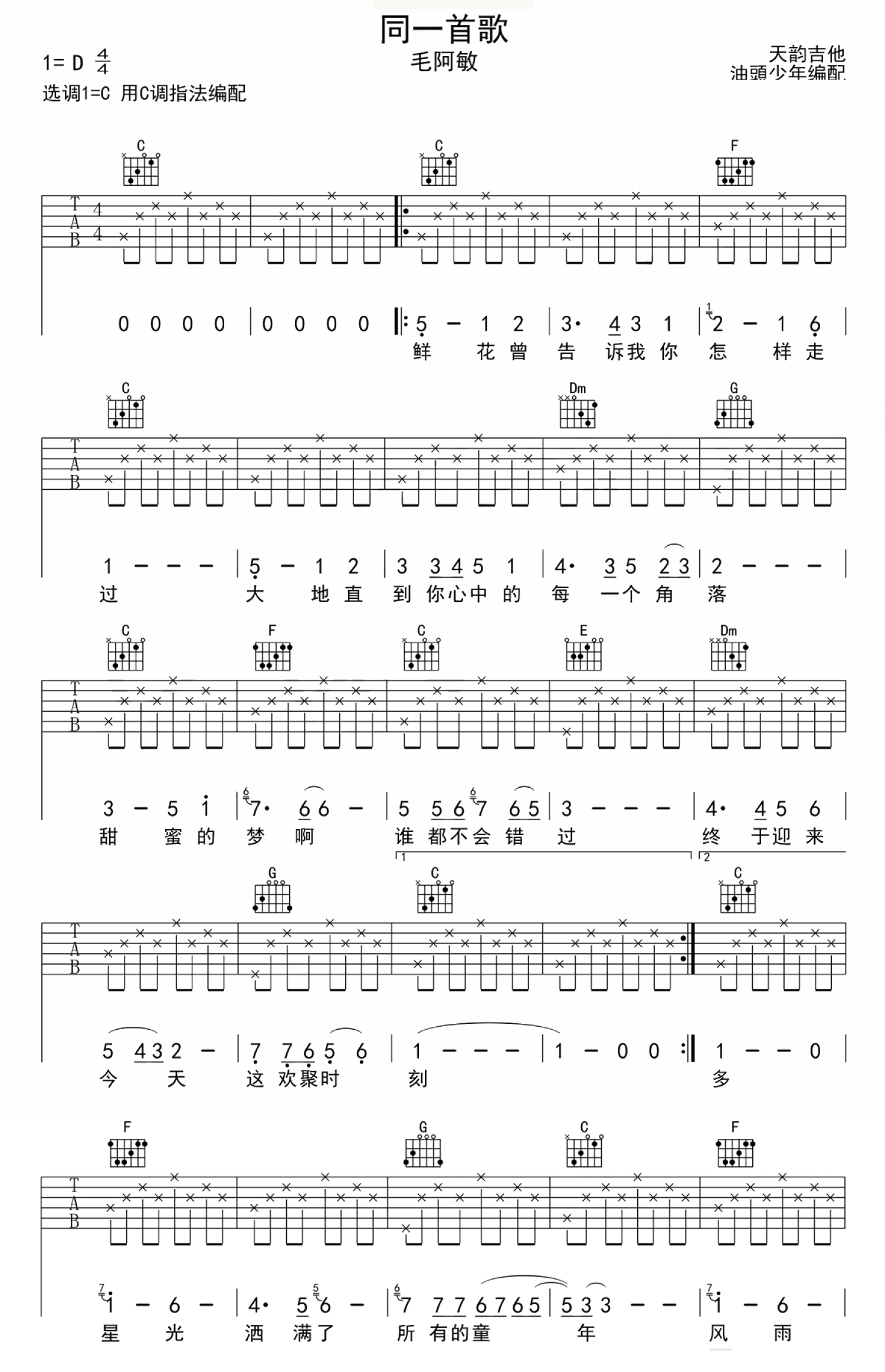 吉他弹唱C调来源:天韵吉他--油头少年4041 浏览2018-03-19 13:34发布图谱共2页