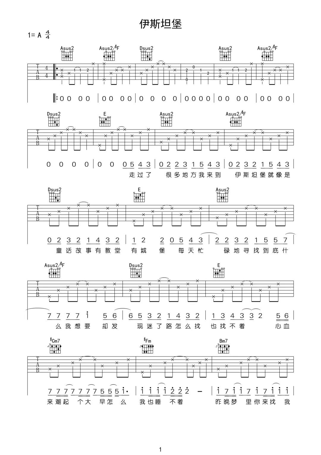 曲谱介绍: 周杰伦《伊斯坦堡》吉他弹唱谱,采用A调指法编配,共有2张高清图谱,免翻页排版设计。