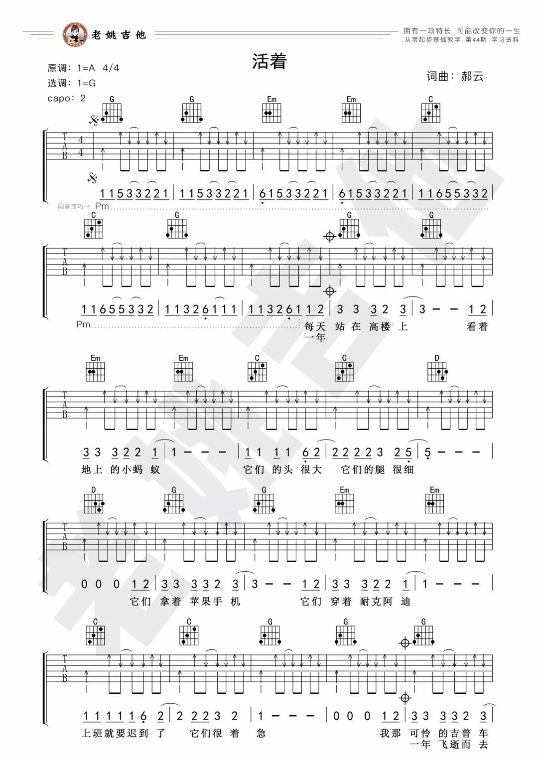 活着吉他谱 - 郝云 - G调吉他弹唱谱