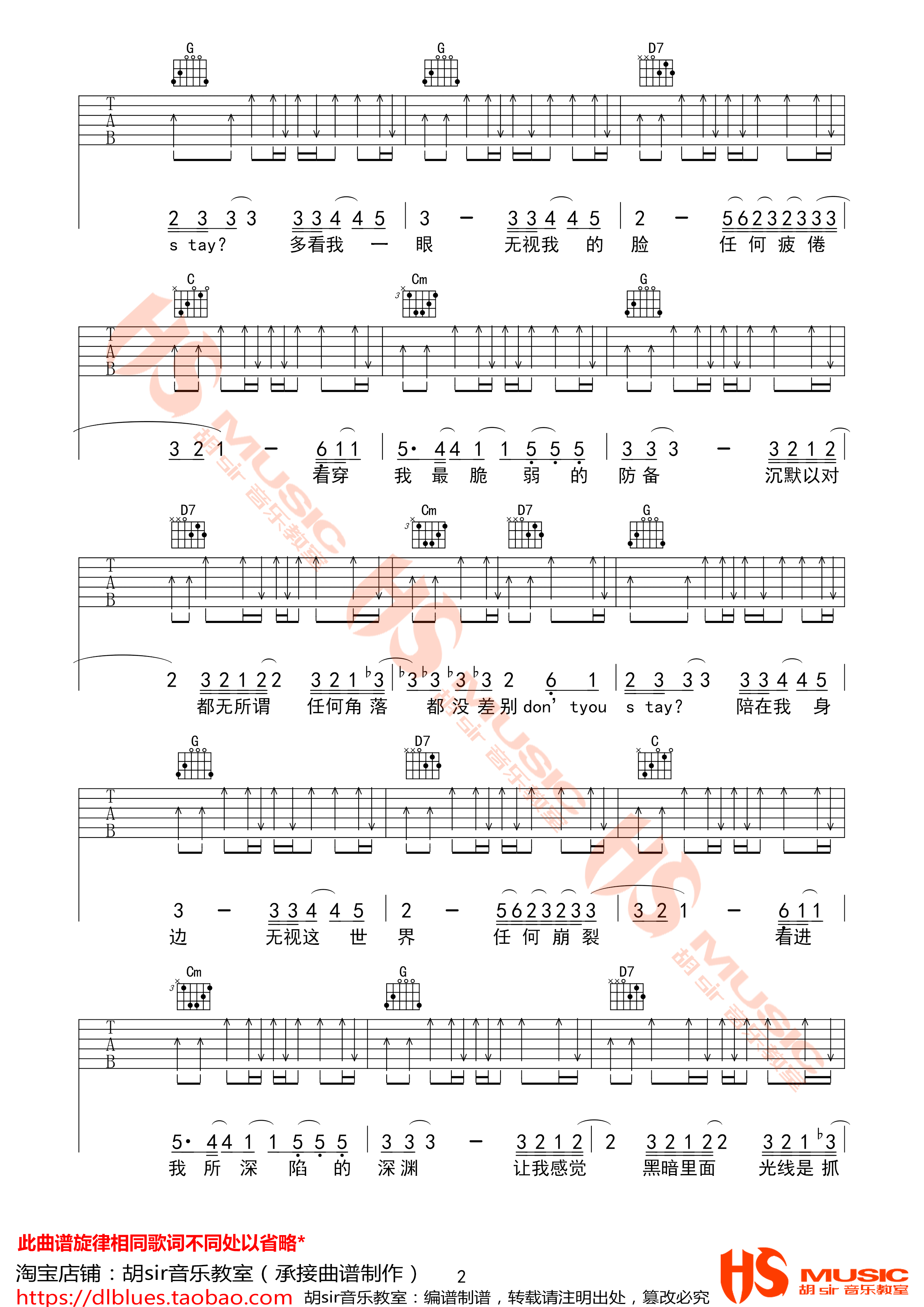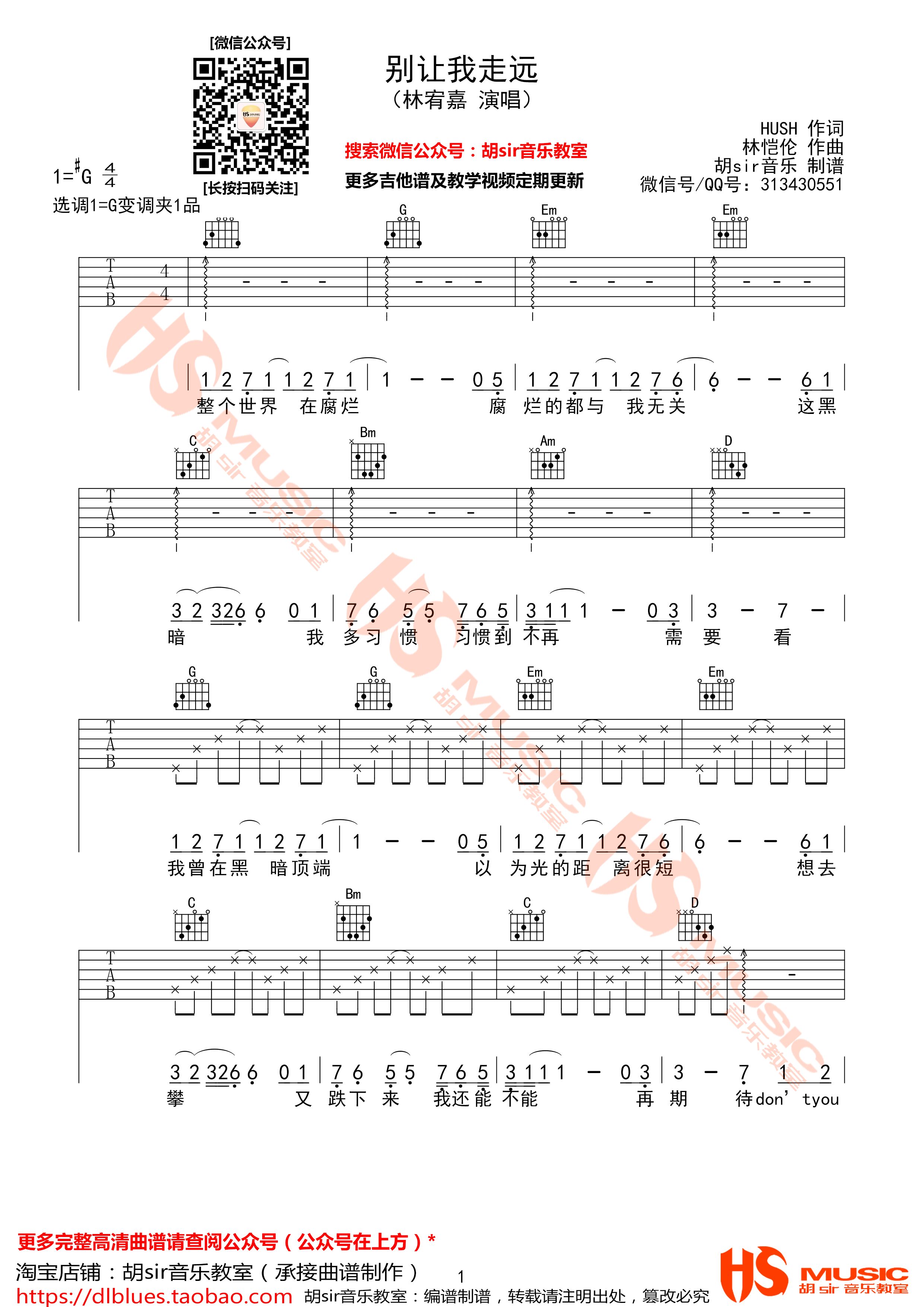曲谱介绍: 林宥嘉《别让我走远》吉他弹唱谱,采用G调指法编配,共有3张高清图谱。