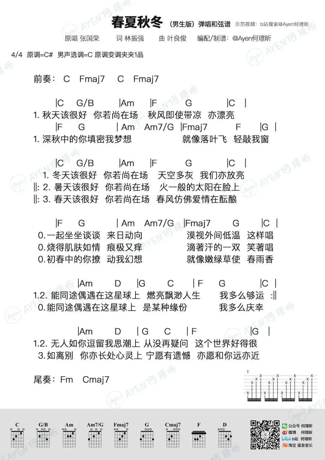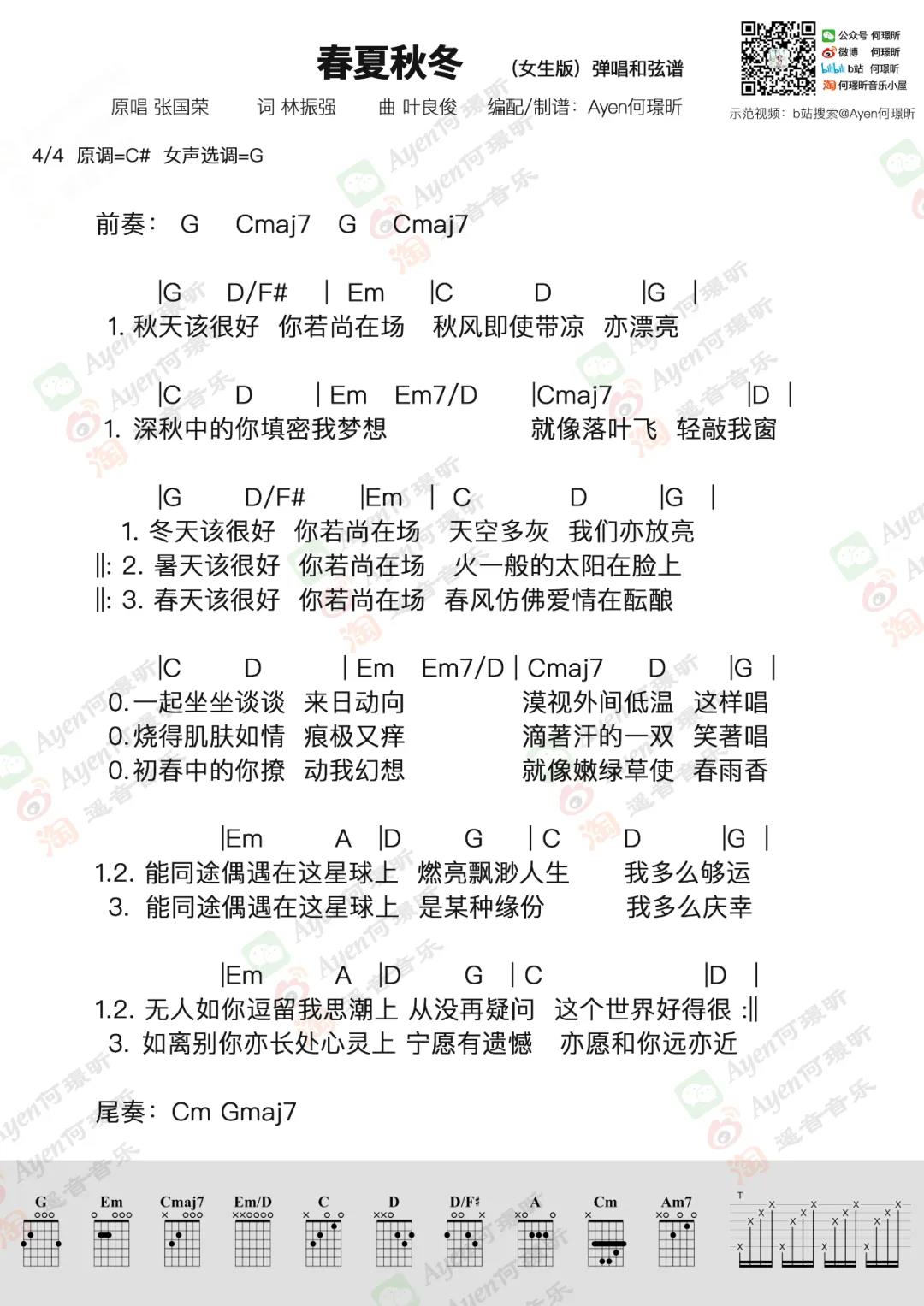 当前位置:琴谱网>吉他弹唱>春夏秋冬