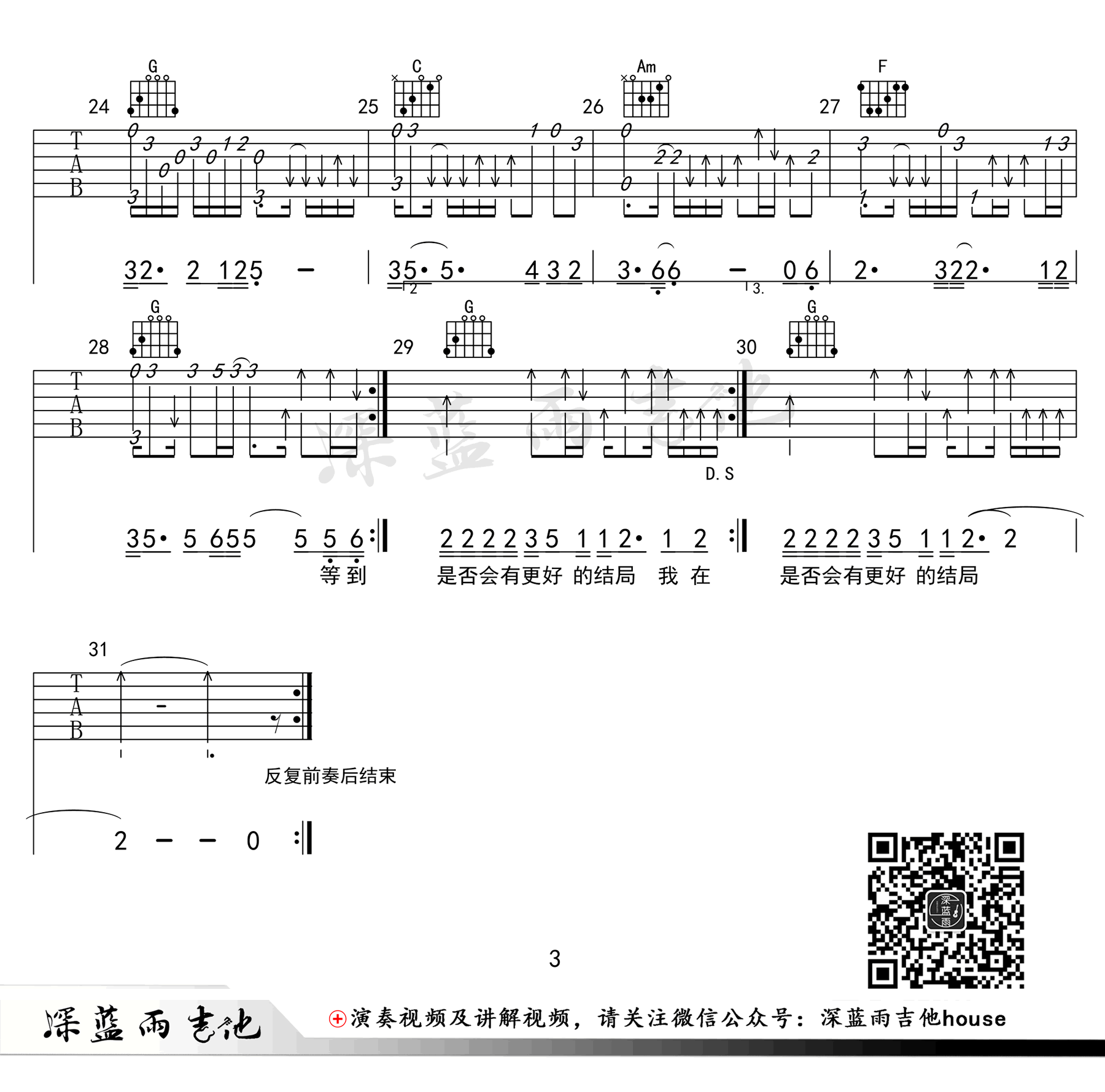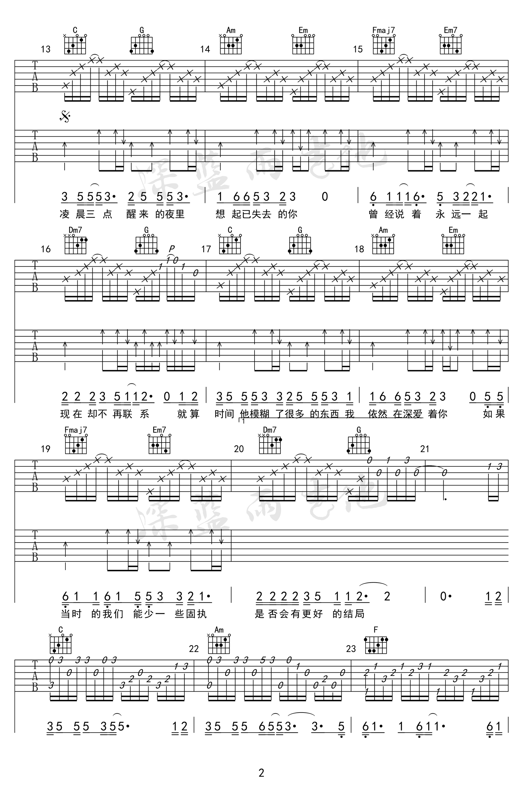 曲谱介绍: 陈硕子《凌晨三点》吉他弹唱谱,采用F调指法编配,共有3张高清图谱。
