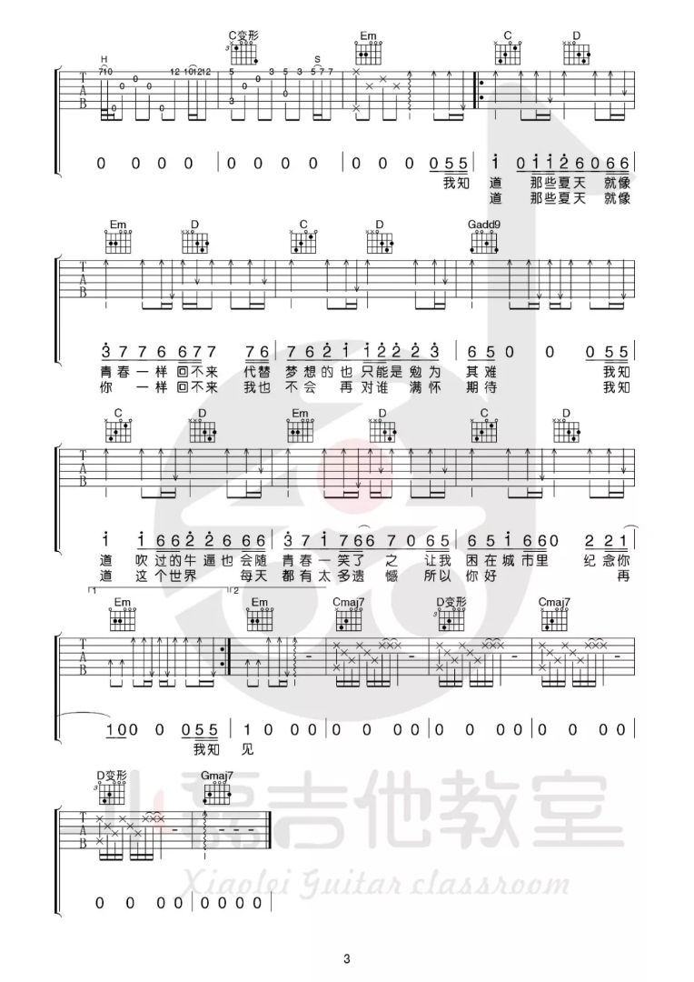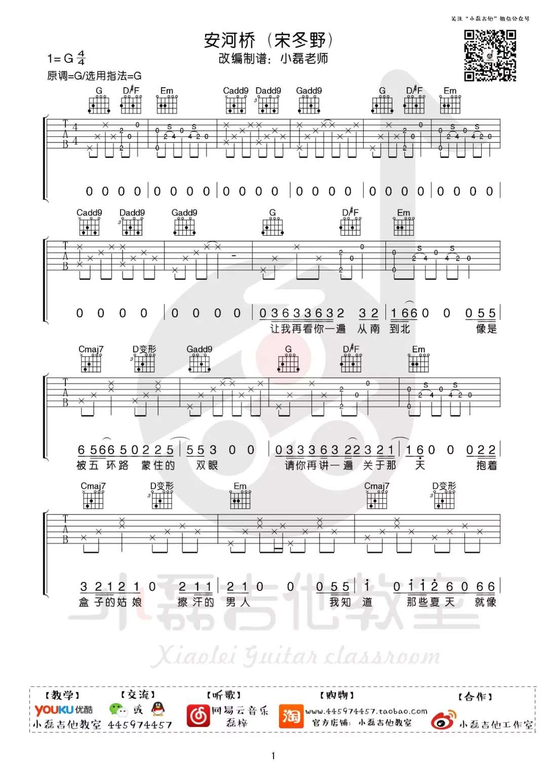 曲谱介绍: 宋冬野《安和桥》吉他弹唱谱,采用G调指法编配,共有3张高清图谱。