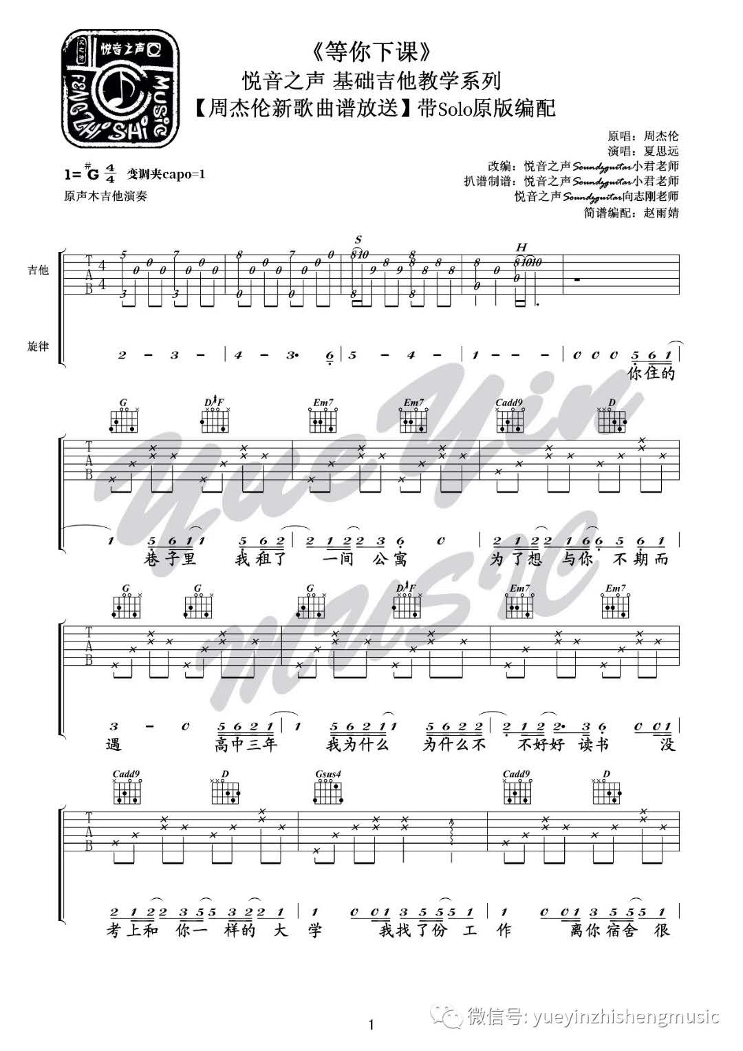 等你下课吉他谱 - 周杰伦 - G调吉他弹唱谱