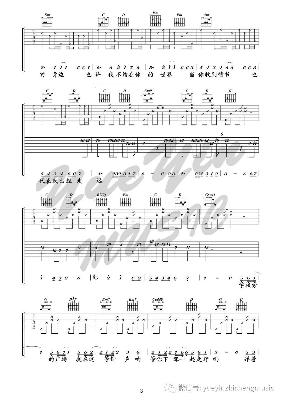 曲谱介绍: 周杰伦《等你下课》吉他弹唱谱,采用G调指法编配,共有4张高清图谱。