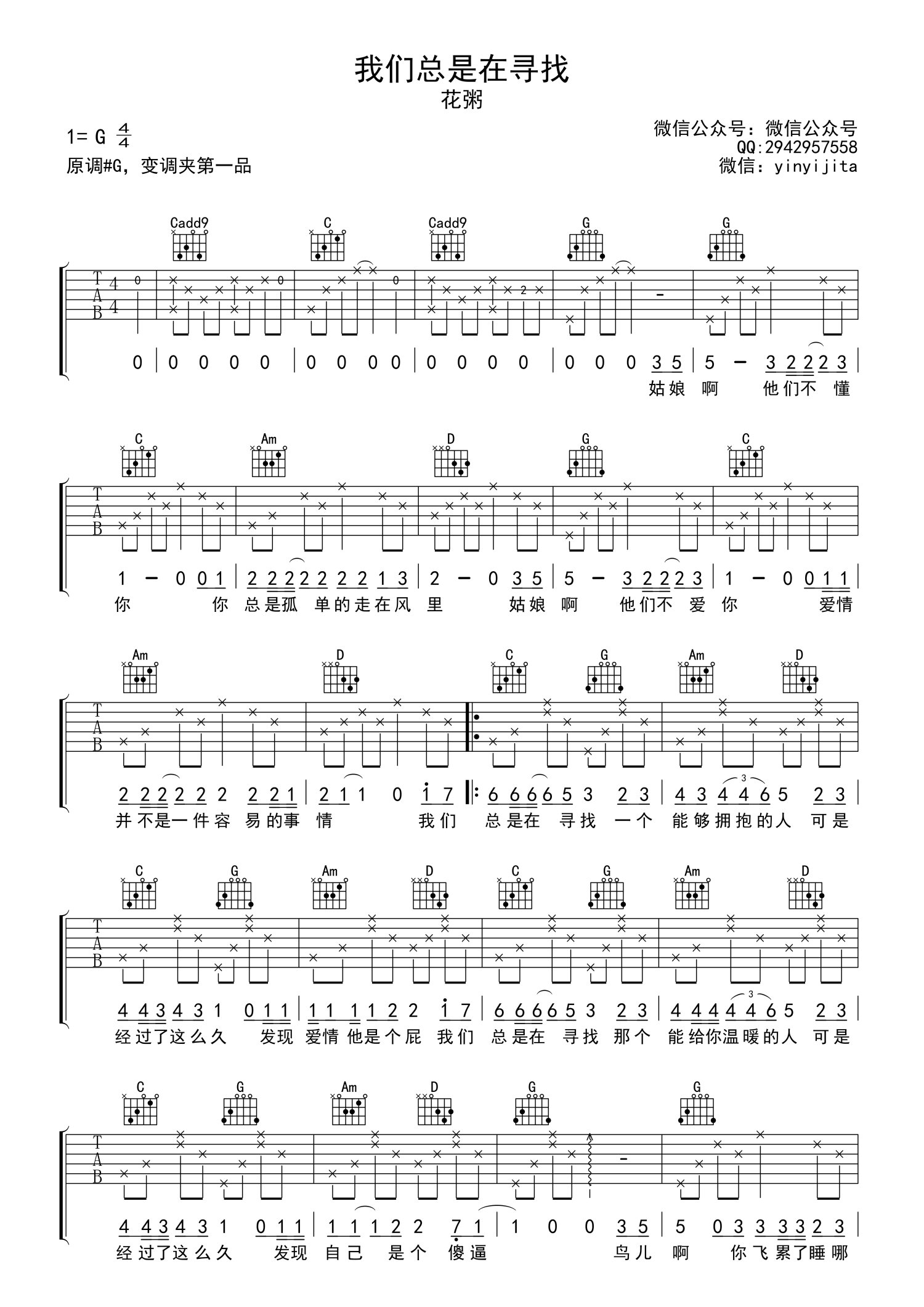 • 我们总是在寻找吉他谱 - 花粥 - G调吉他弹唱谱第1张