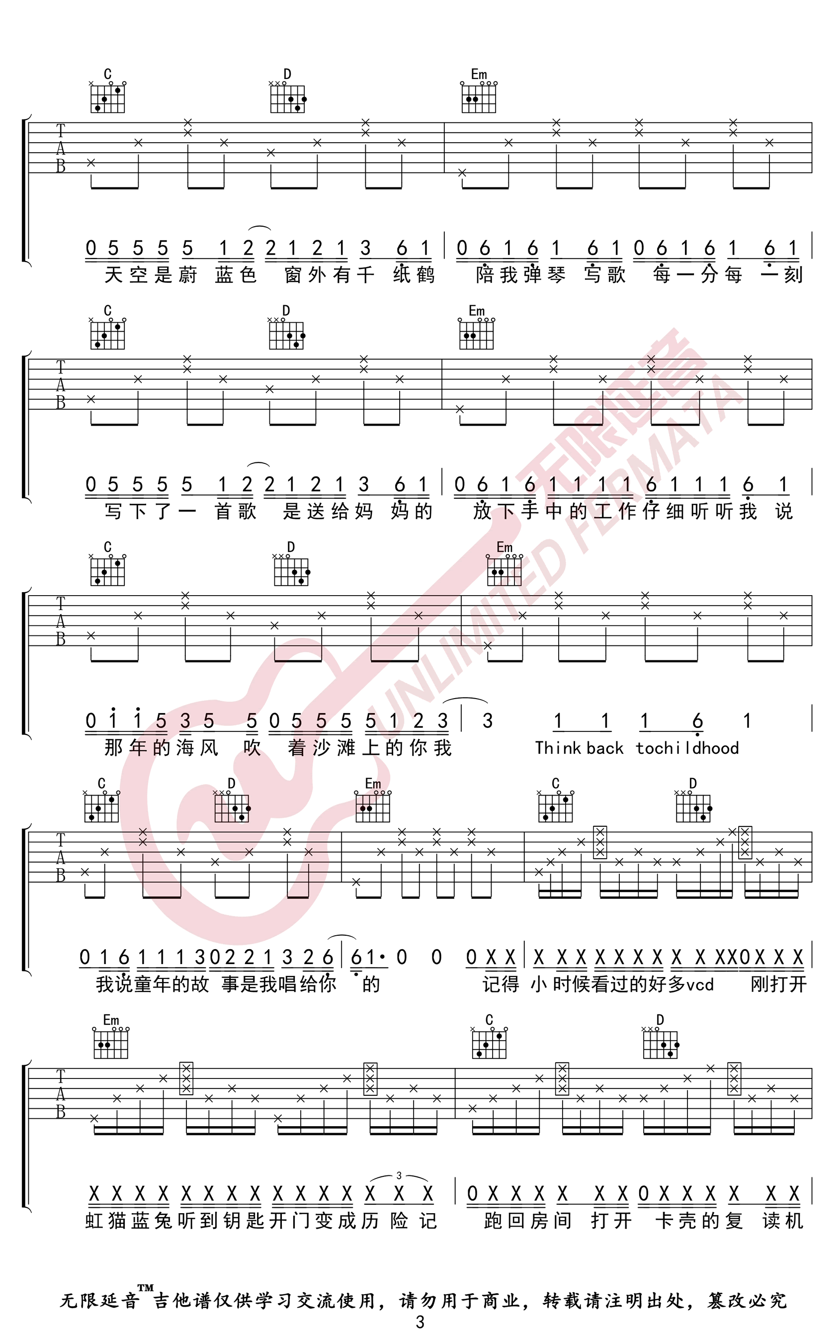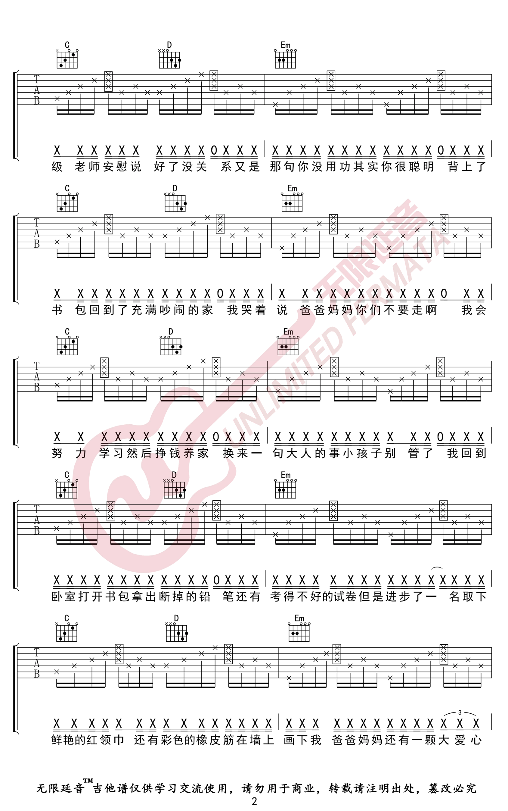 曲谱介绍: 吉他谱介绍:MOM吉他谱,蜡笔小心演唱的一首歌曲,4/4拍的节奏,这首歌曲的原调为G调,这里曲谱采用了G调指法进行编配,演唱时可不夹变调夹,曲谱由琴谱网更新上传,共4张高清图片弹唱吉他谱例,来源于@无限延音编配出品。这首歌是专门送给妈妈的,母爱一如既往的伟大,妈妈是第一次当妈妈,没有人教她,可她做的很好;我们也是第一次当儿女,很多人教我们,可我们做的还不够。