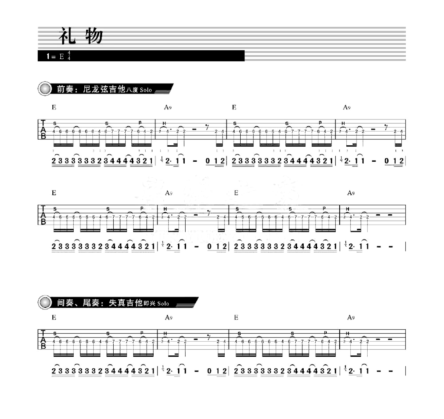 曲谱介绍: 许巍《礼物》solo吉他谱