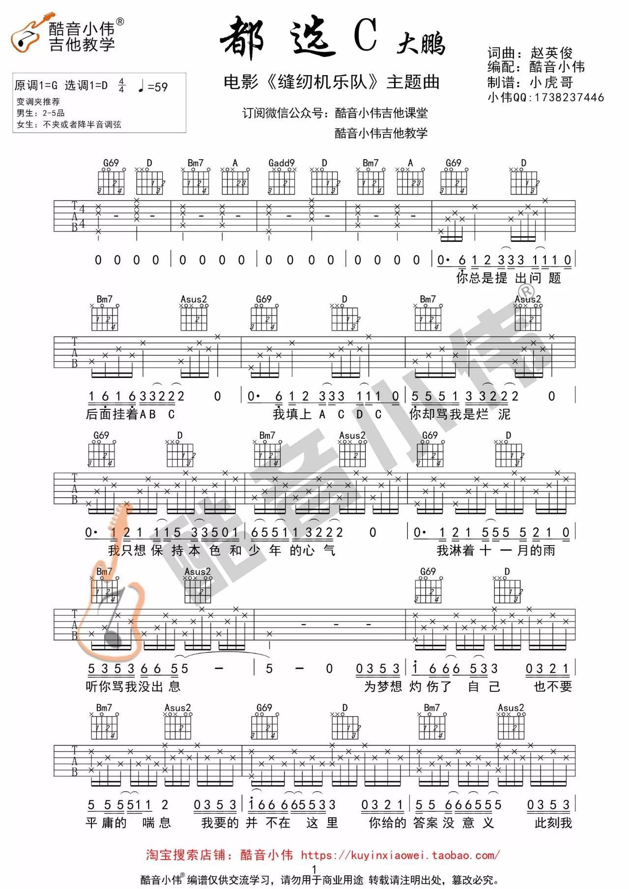 都选C吉他谱 - 大鹏 - D调吉他弹唱谱