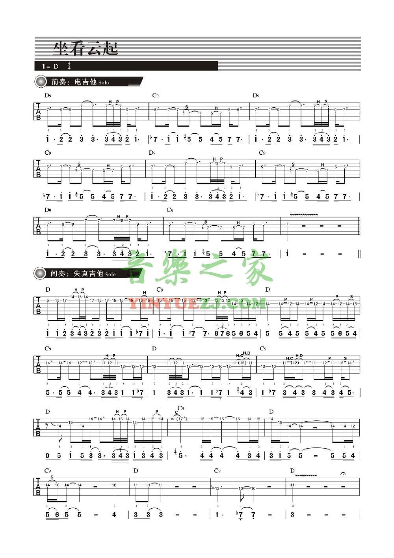 当前位置:琴谱网>电吉他谱>坐看云起