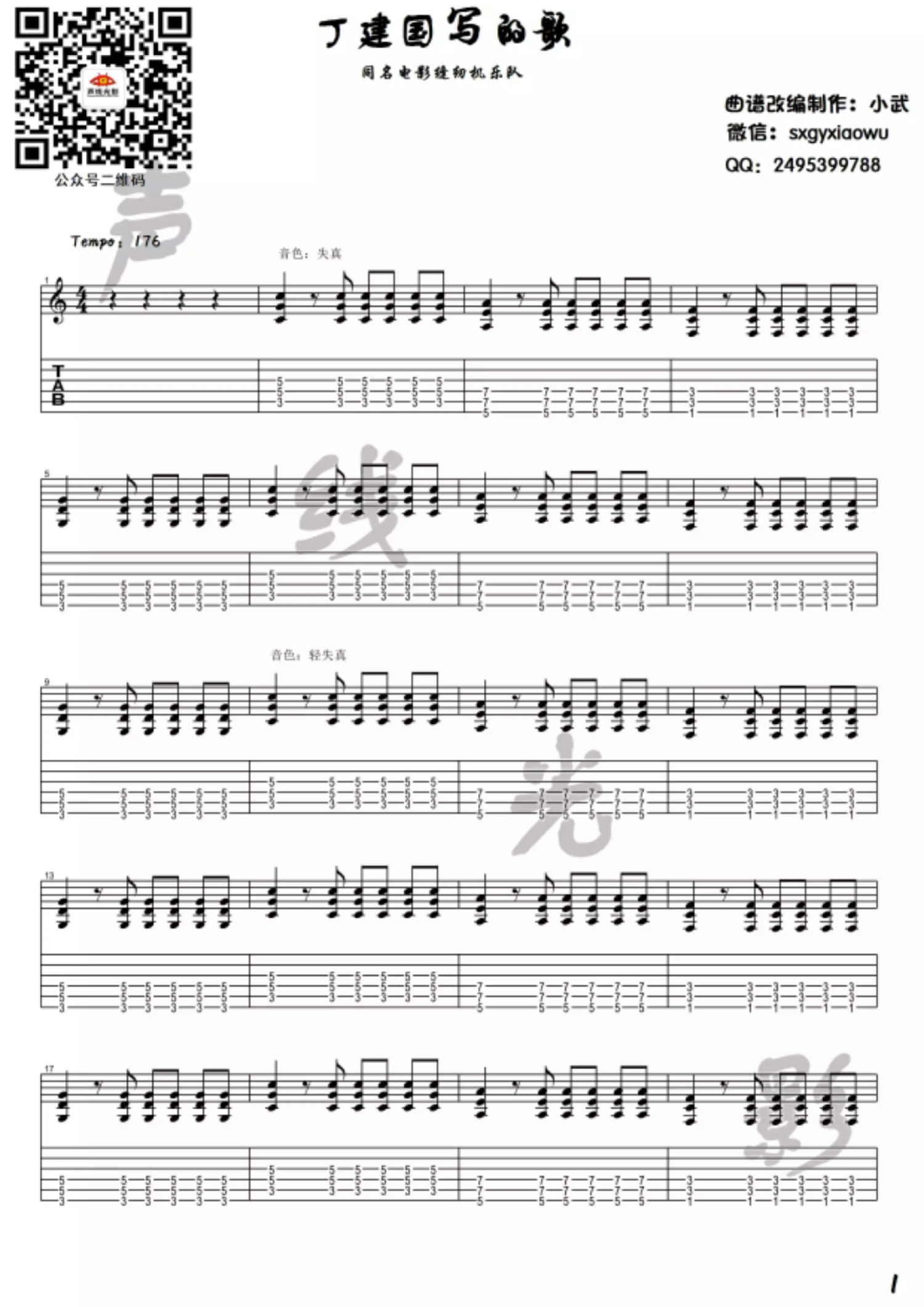 曲谱介绍: 缝纫机乐队《丁建国写的歌》电吉他谱