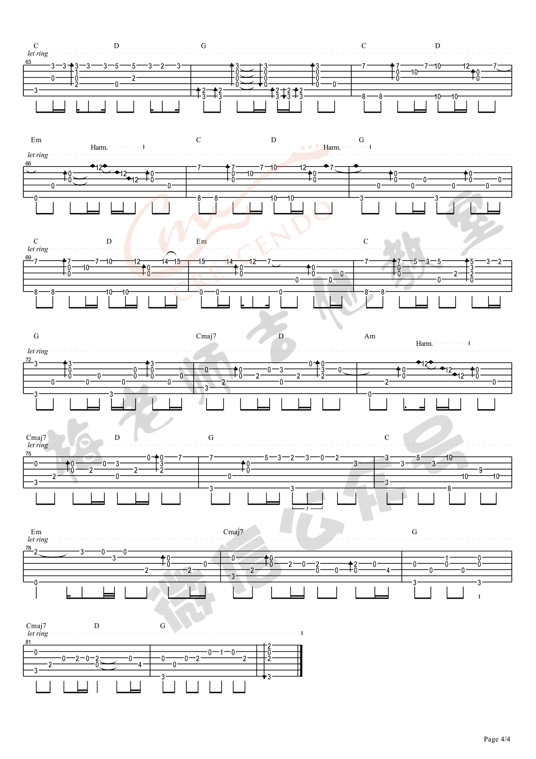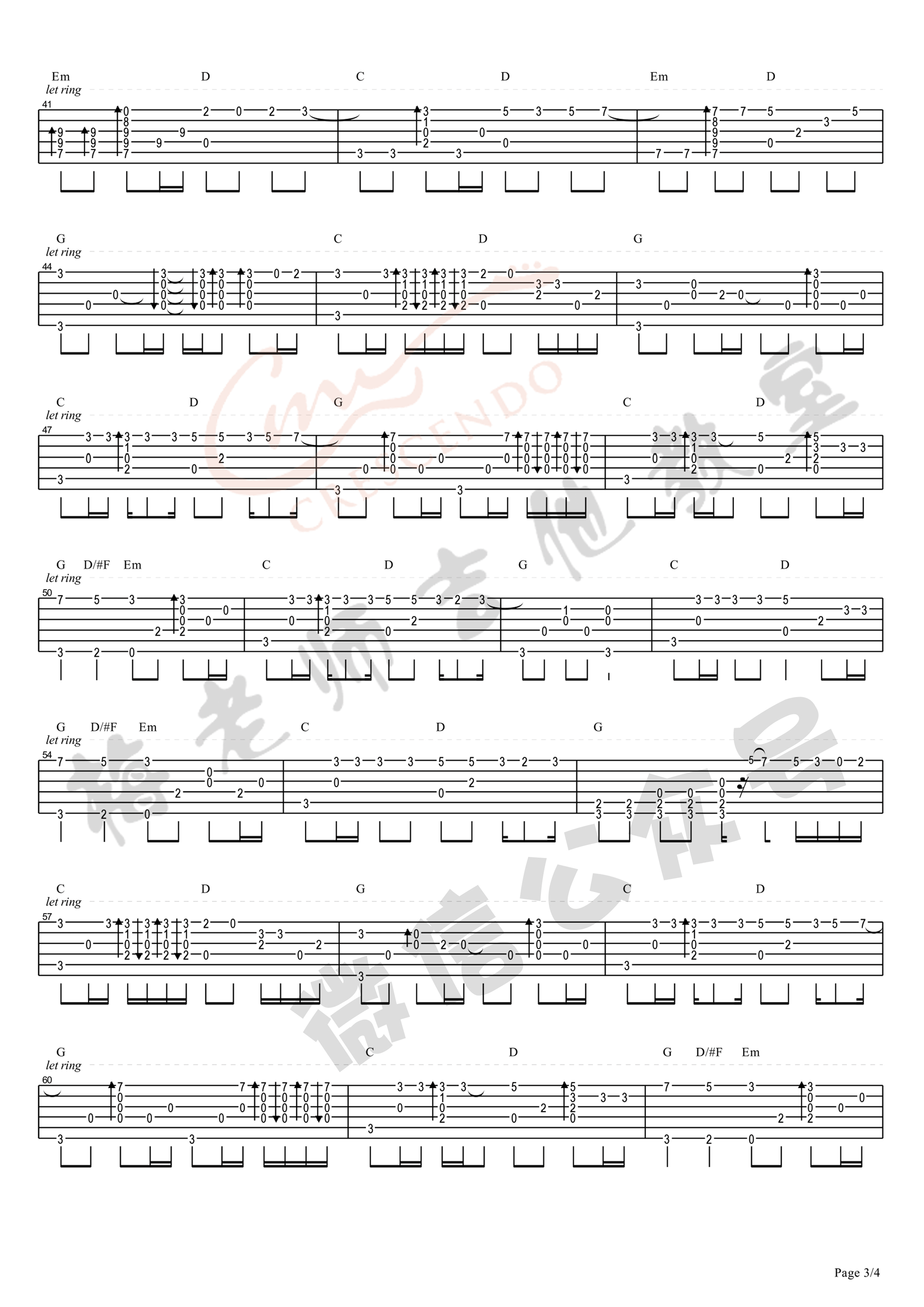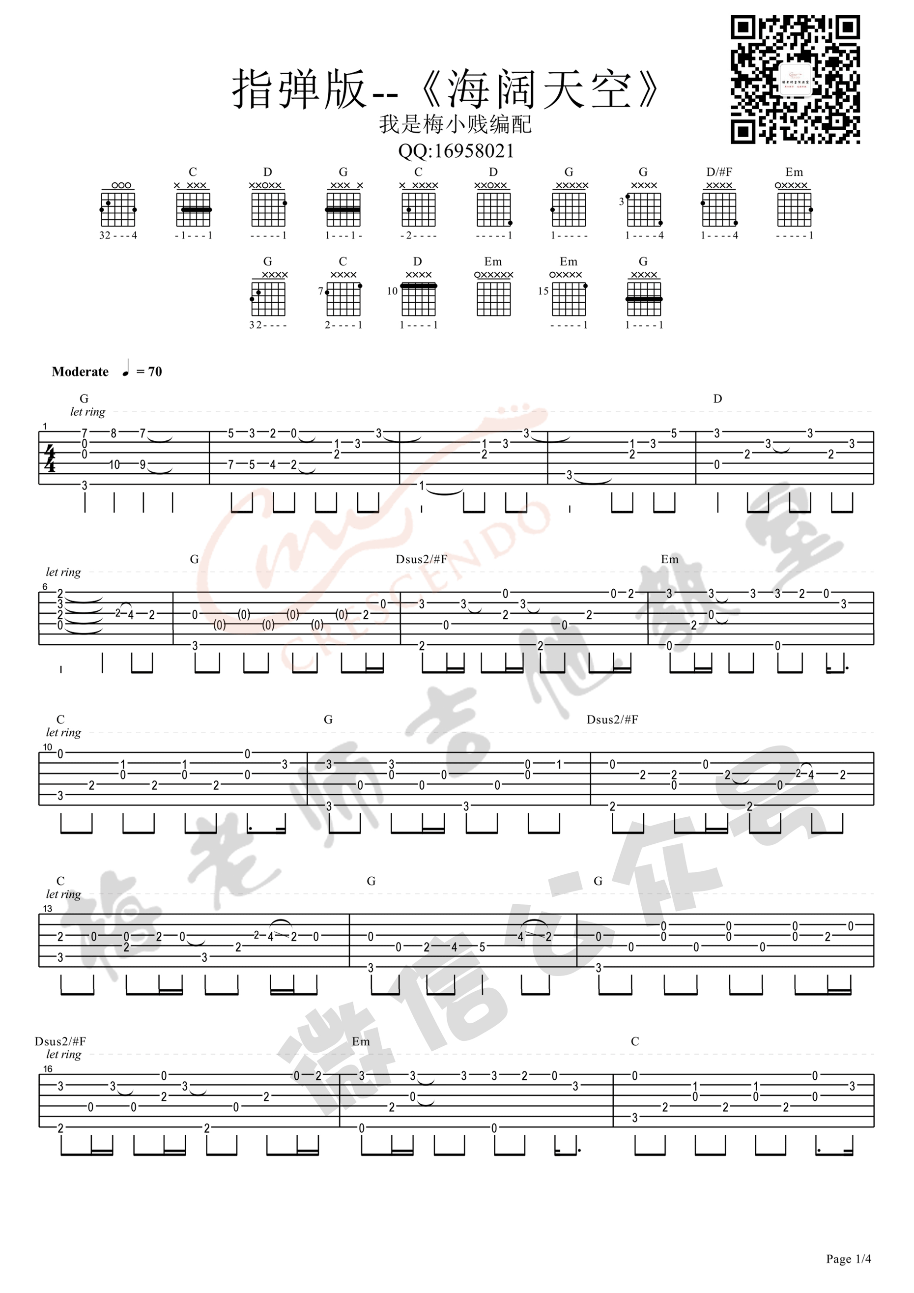 曲谱介绍: Beyond《海阔天空》吉他独奏谱,共有4张高清图谱。