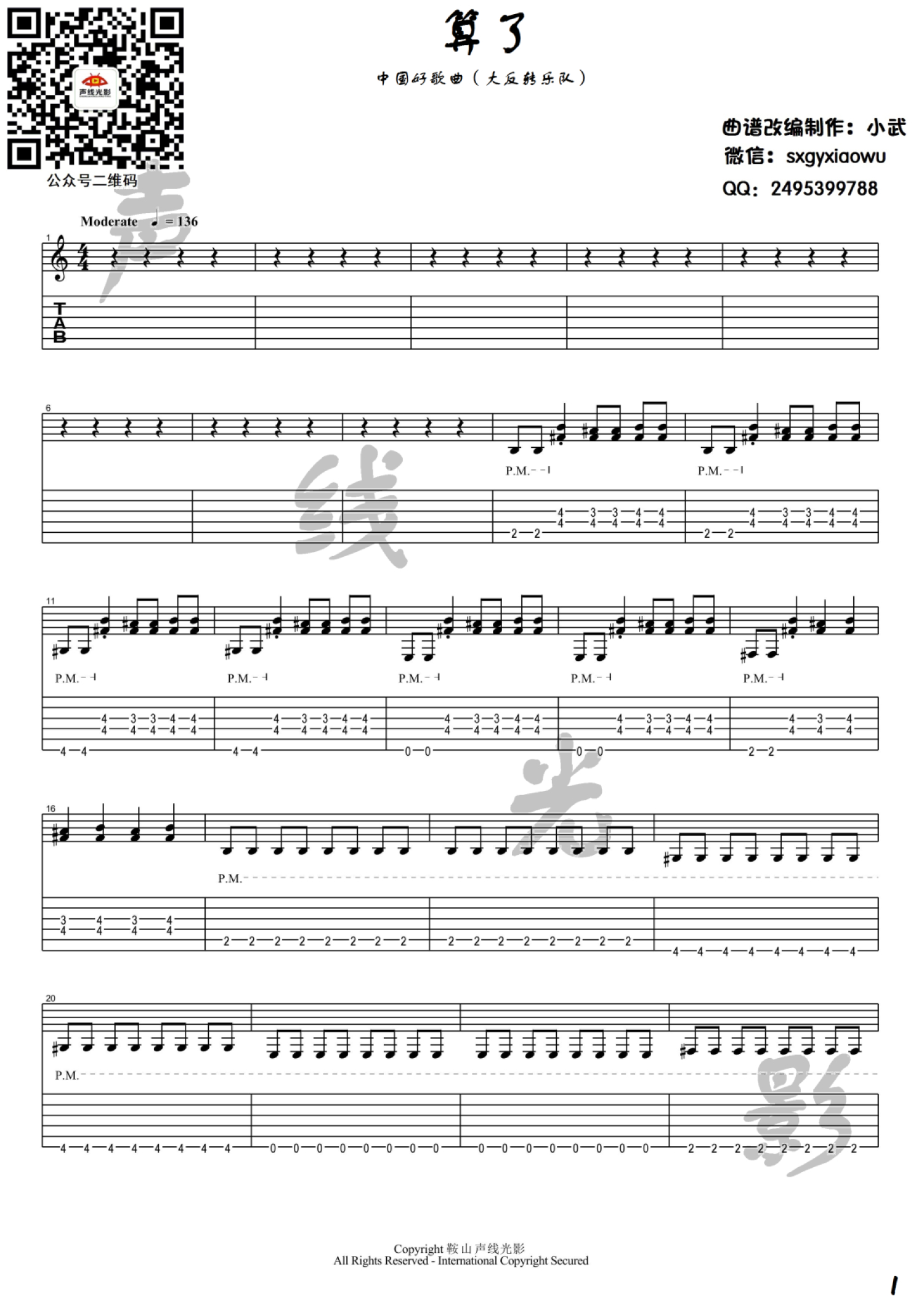 曲谱介绍: 大反转乐队《算了》吉他谱_电吉他谱