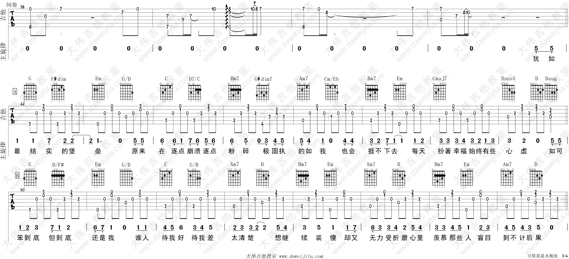 当前位置:琴谱网>吉他弹唱>可惜我是水瓶座