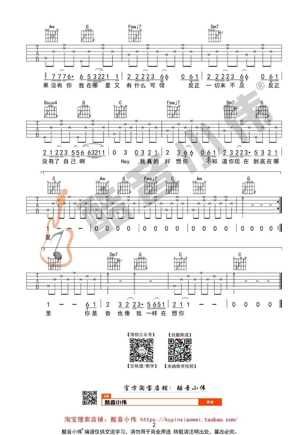 当前位置:琴谱网>吉他弹唱>如果没有你 简单版