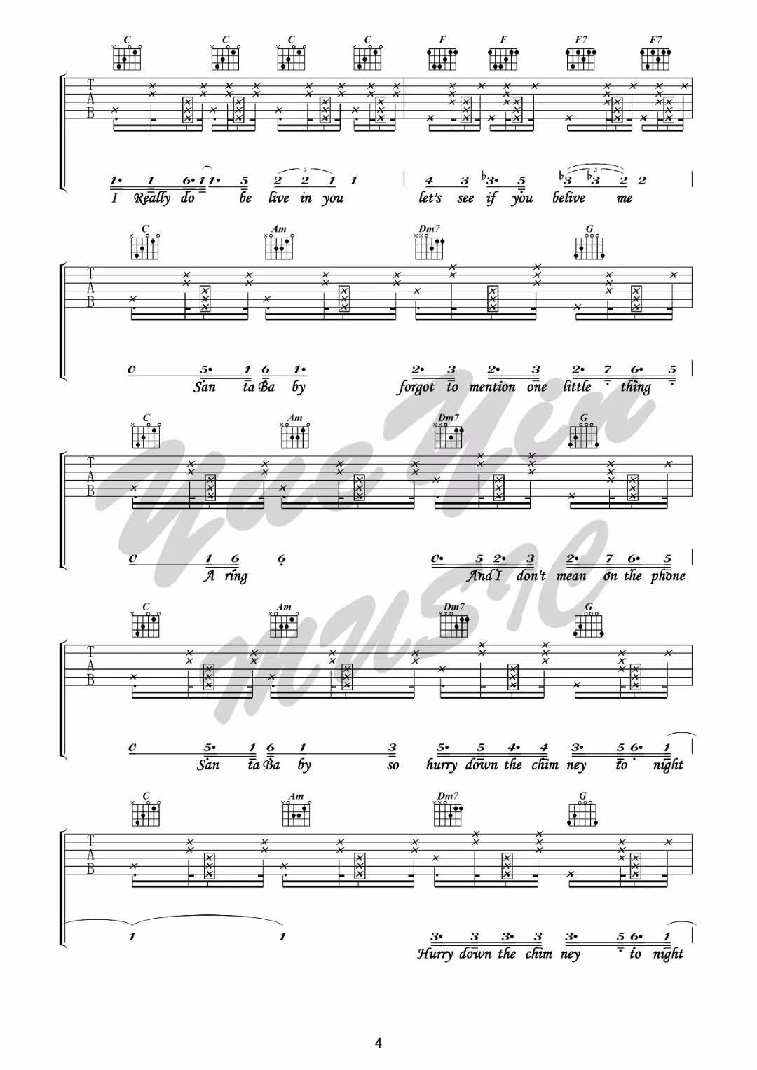 曲谱介绍: Taylor,Swift《SantaBaby》吉他弹唱谱,采用D调指法编配,共有5张高清图谱。