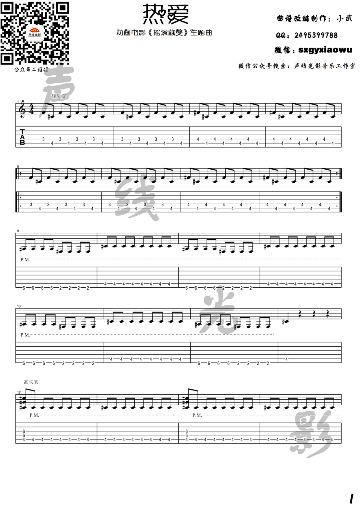 曲谱介绍: 郑钧《热爱》吉他谱_电吉他谱