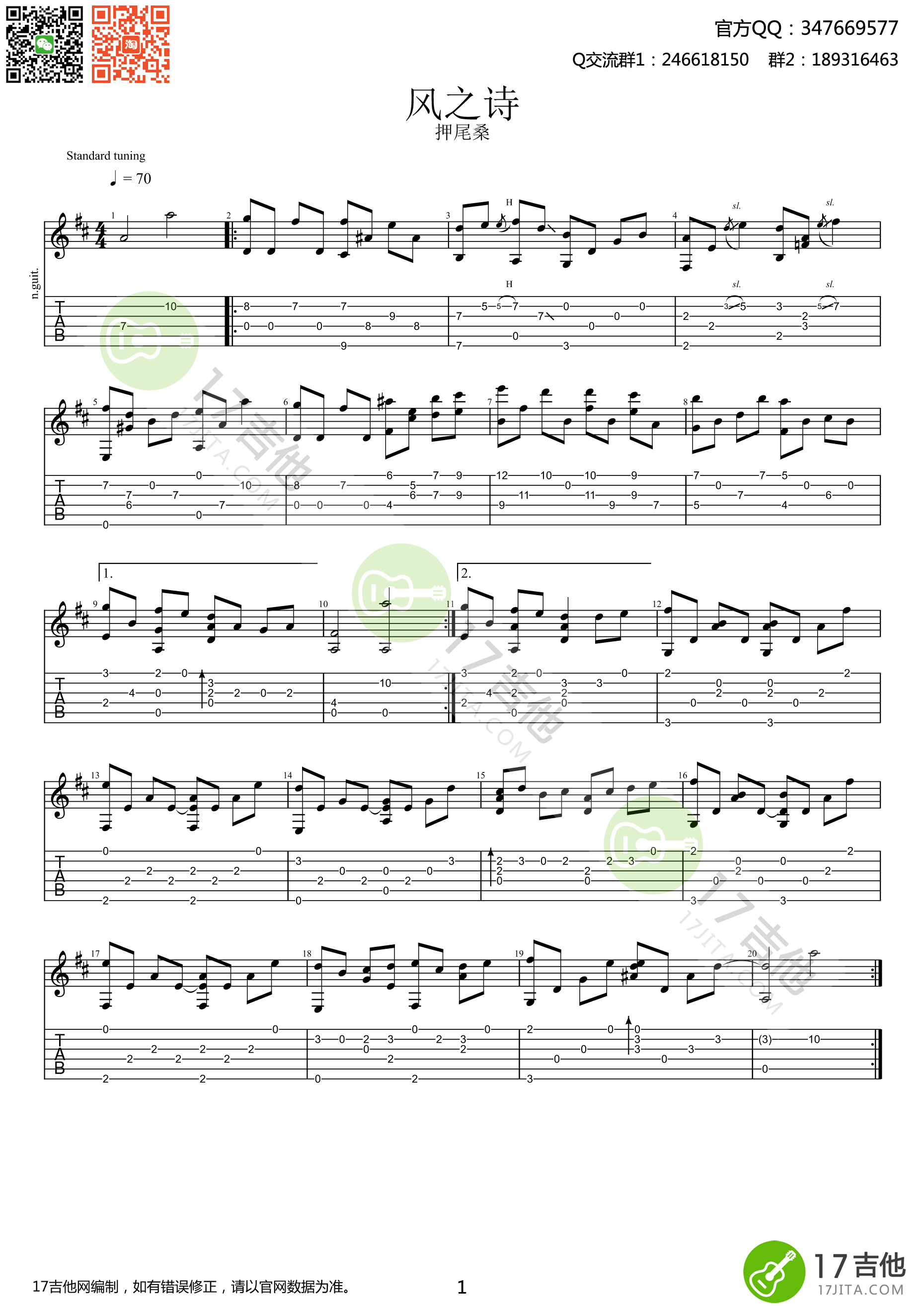 当前位置:琴谱网>吉他独奏>Wind Song 风之诗 原版