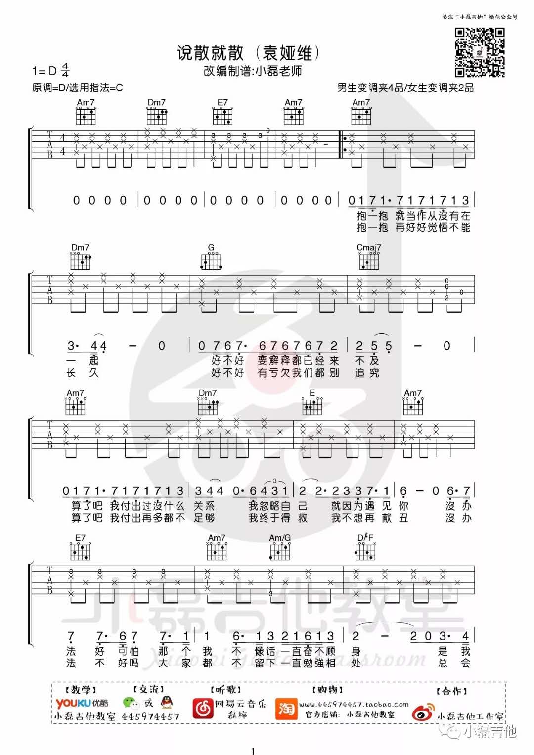 说散就散吉他谱 - 袁娅维 - D调吉他弹唱谱