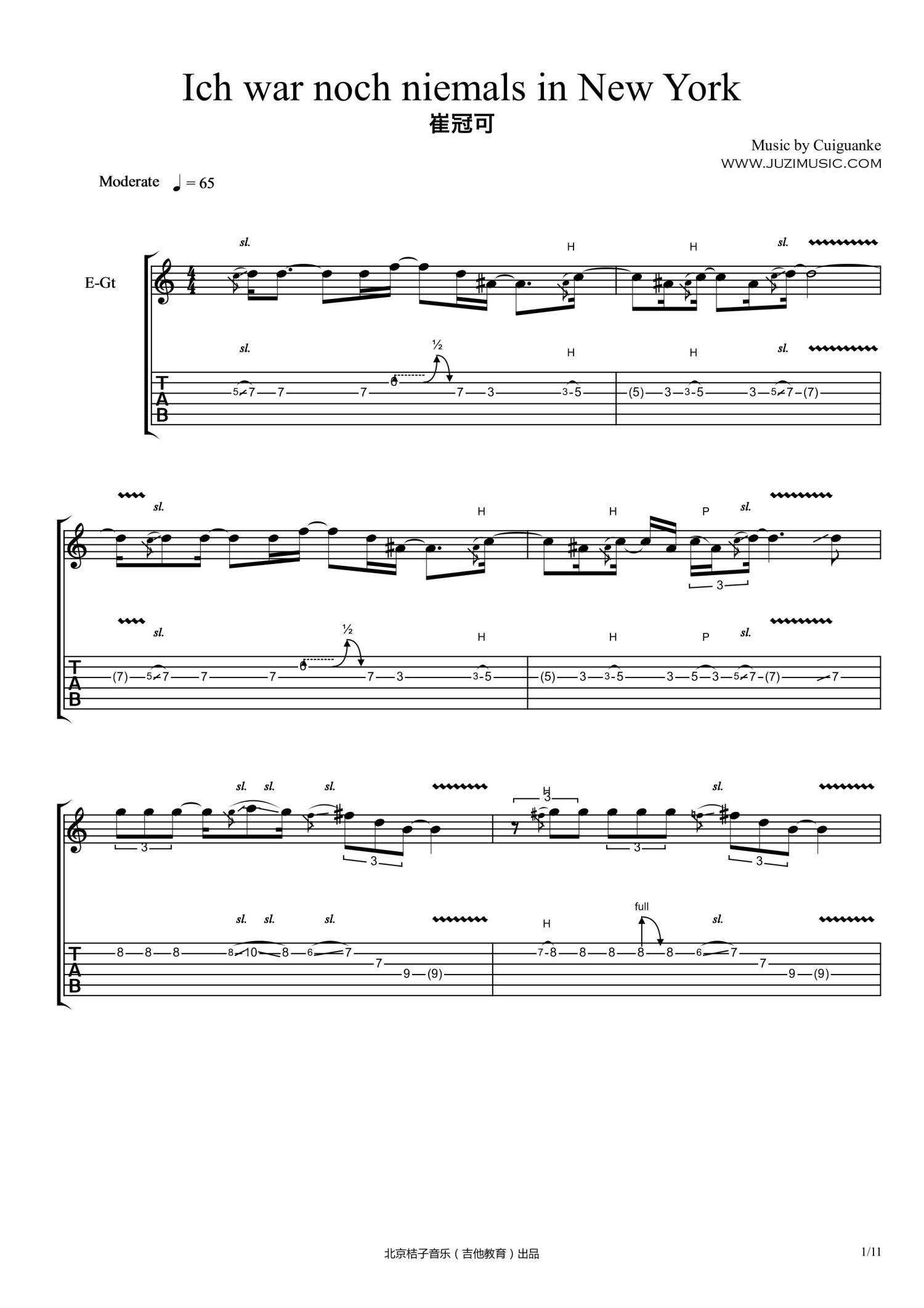 我从没去过纽约吉他谱 - 崔冠可 - 电吉他谱
