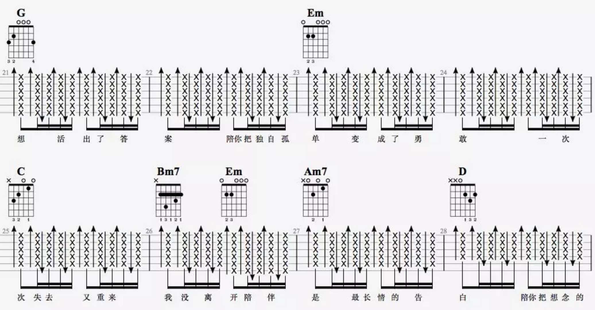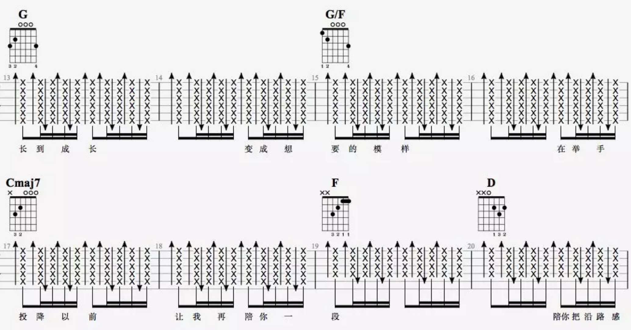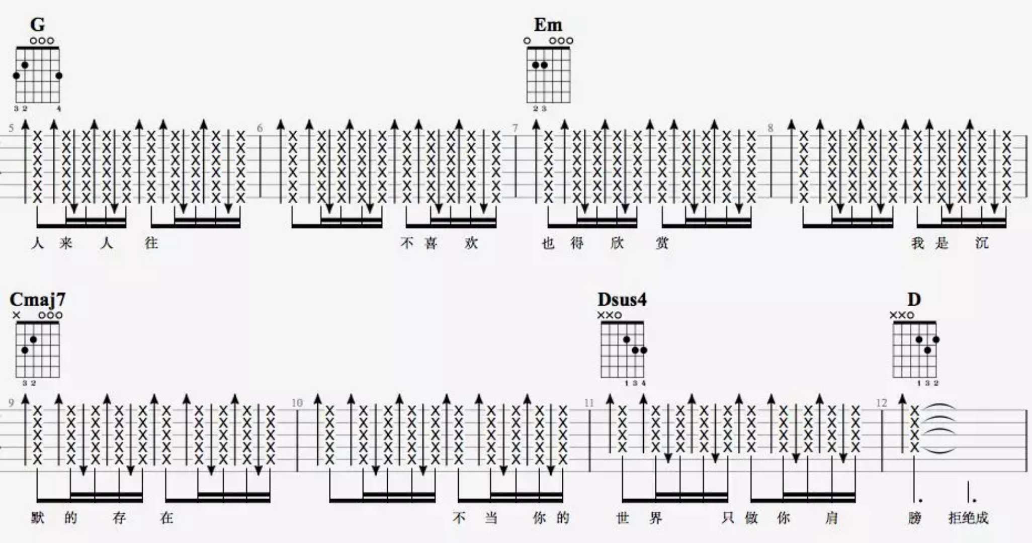 曲谱介绍: 陈奕迅《陪你度过漫长岁月》吉他弹唱谱,采用G调指法编配,共有6张高清图谱。