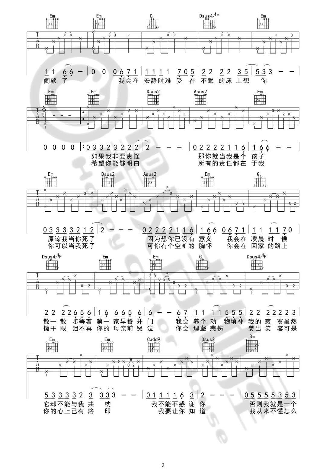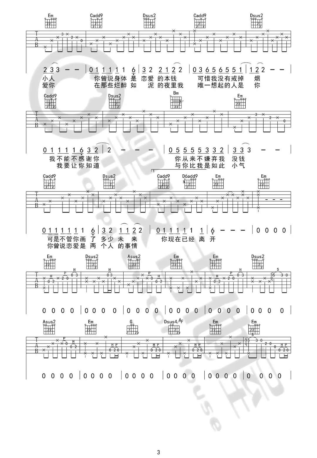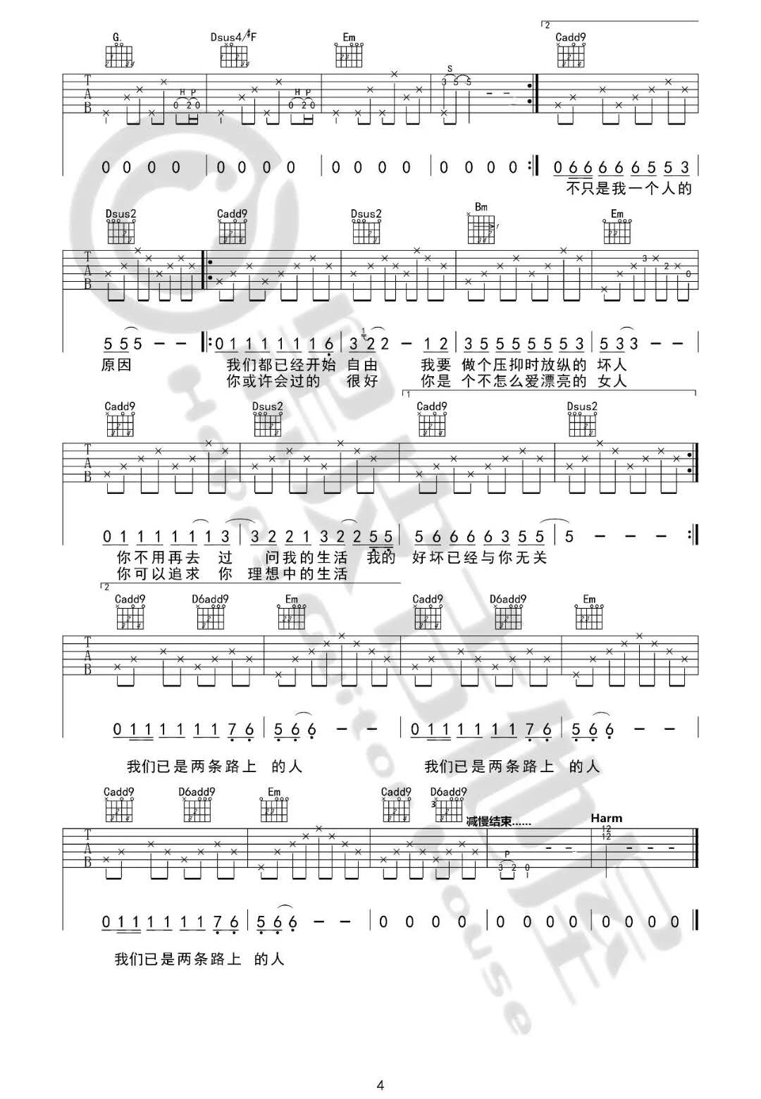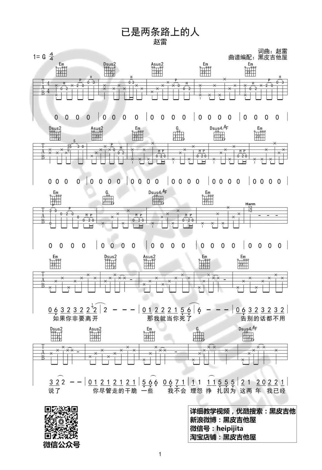 曲谱介绍: 赵雷《已是两条路上的人》吉他弹唱谱,采用G调指法编配,共有4张高清图谱。