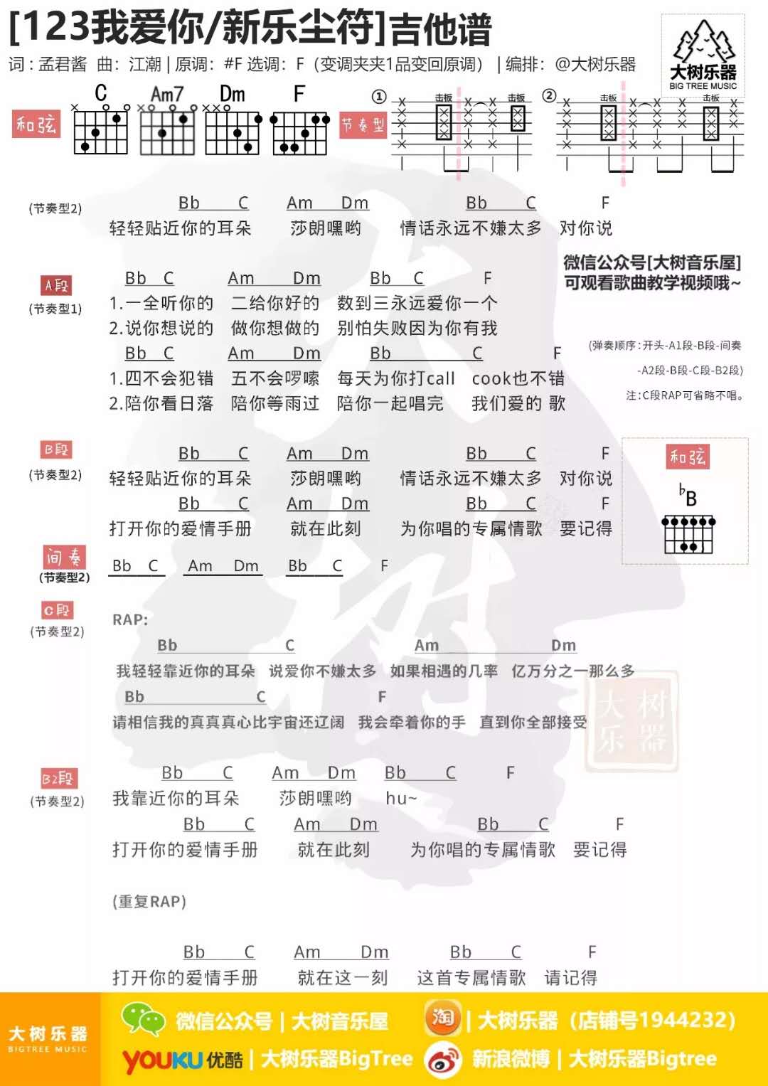 当前位置:琴谱网>吉他弹唱>123我爱你