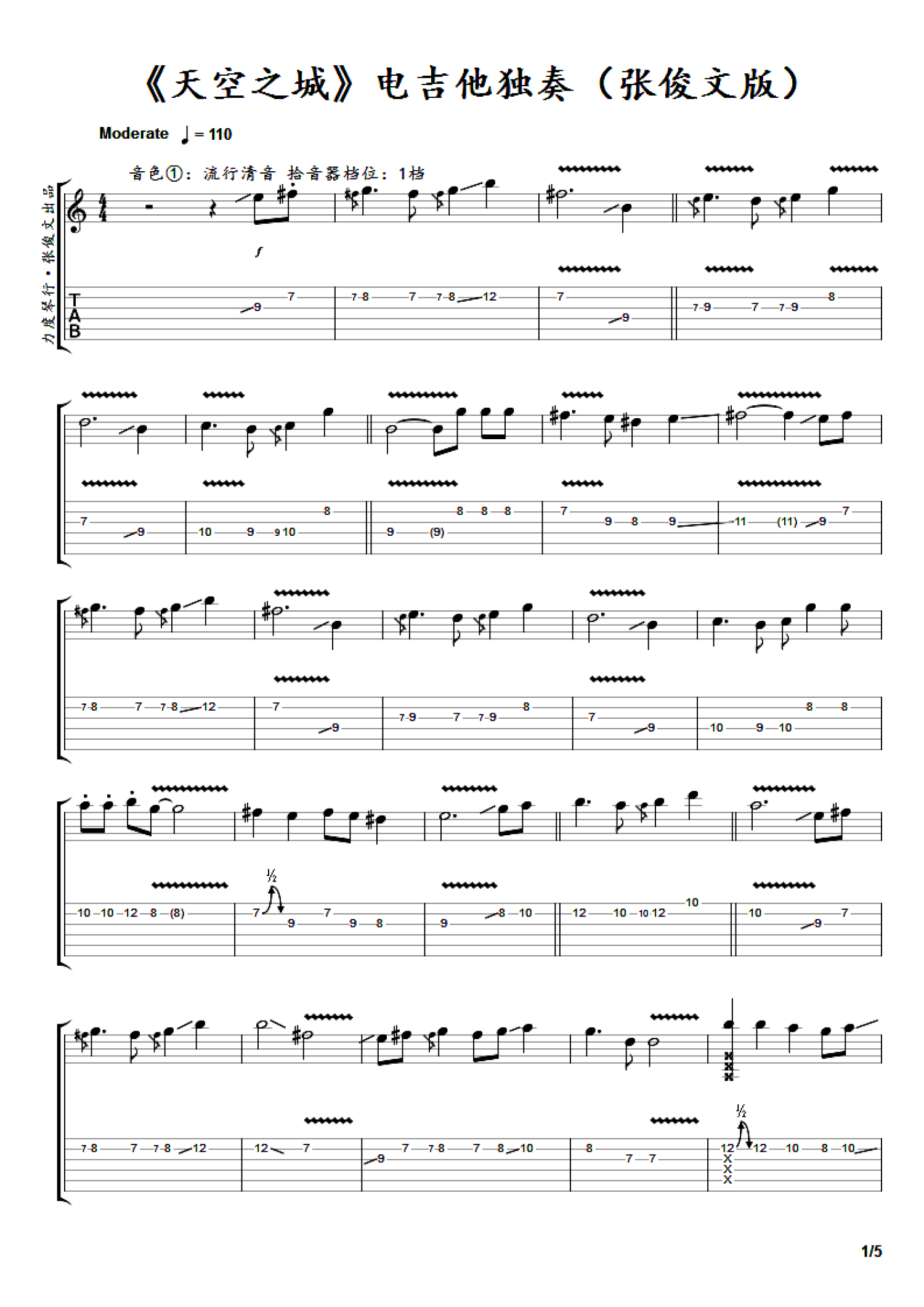 天空之城吉他谱 - 张俊文 - 电吉他谱
