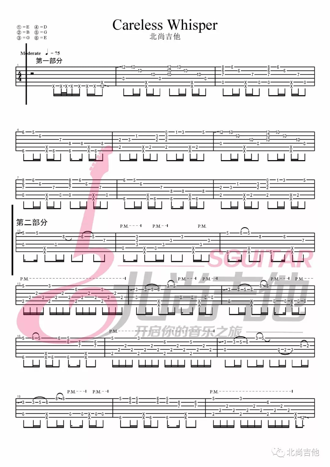 曲谱介绍: Wham!《CarelessWhisper》吉他独奏谱,共有2张高清图谱,免翻页排版设计。