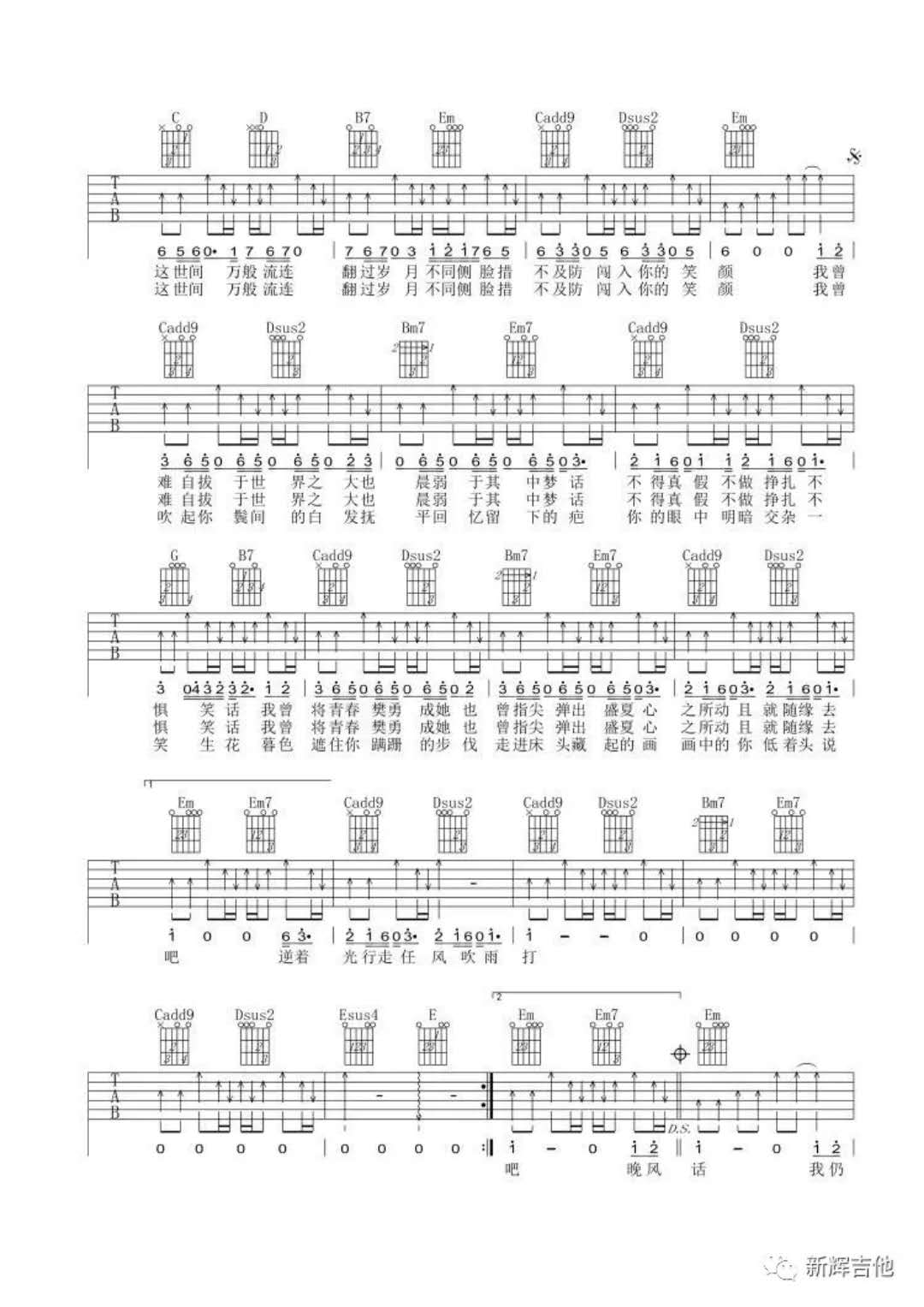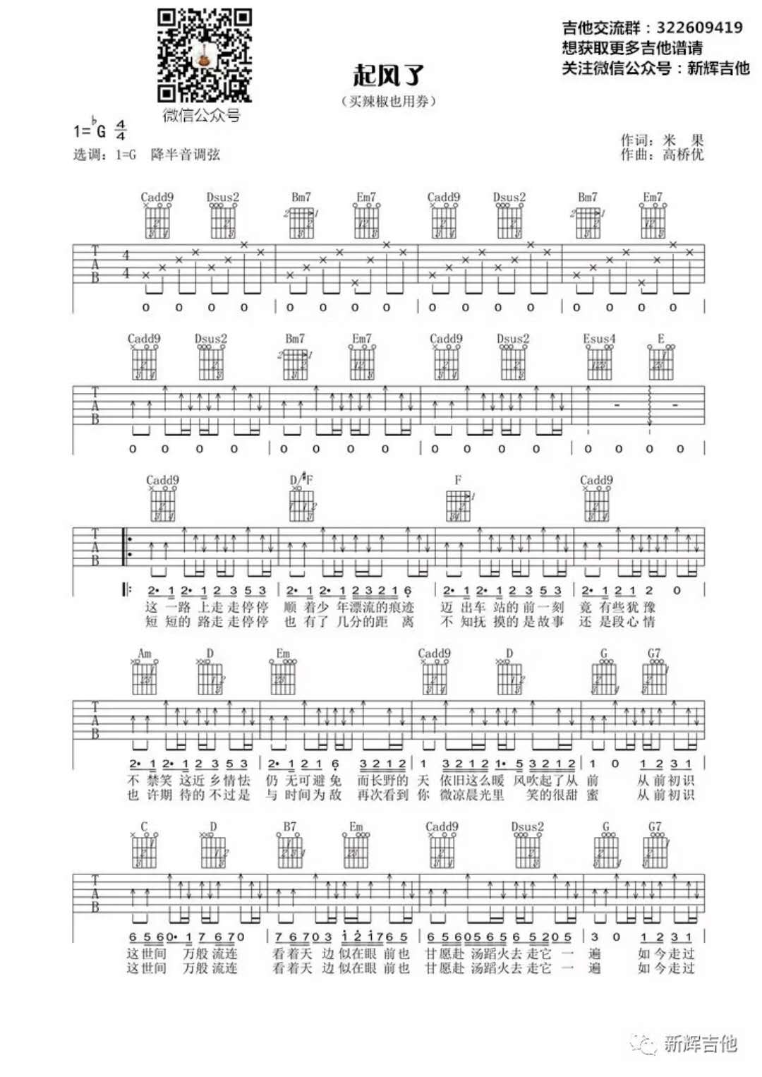 曲谱介绍: 买辣椒也用券《起风了》吉他弹唱谱,采用G调指法编配,共有3张高清图谱。