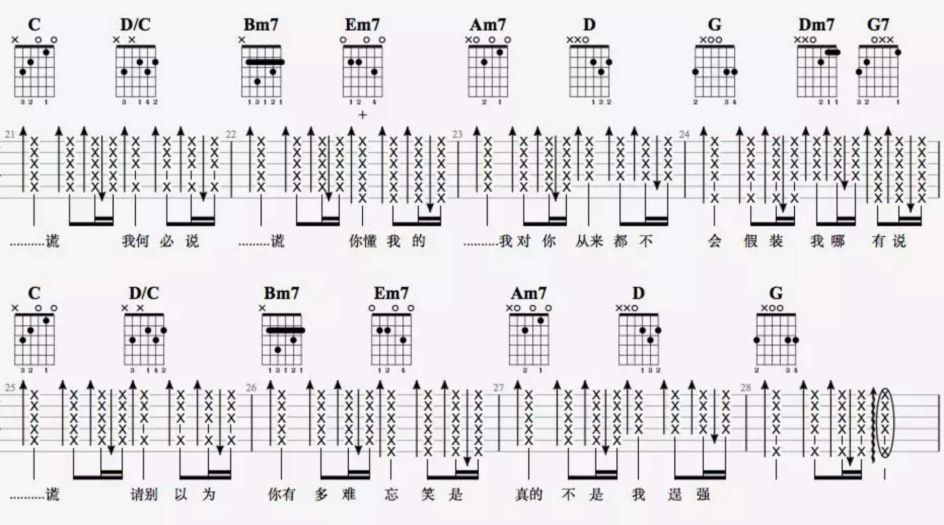 曲谱介绍: 林宥嘉《说谎》吉他弹唱谱,采用G调指法编配,共有5张高清图谱。