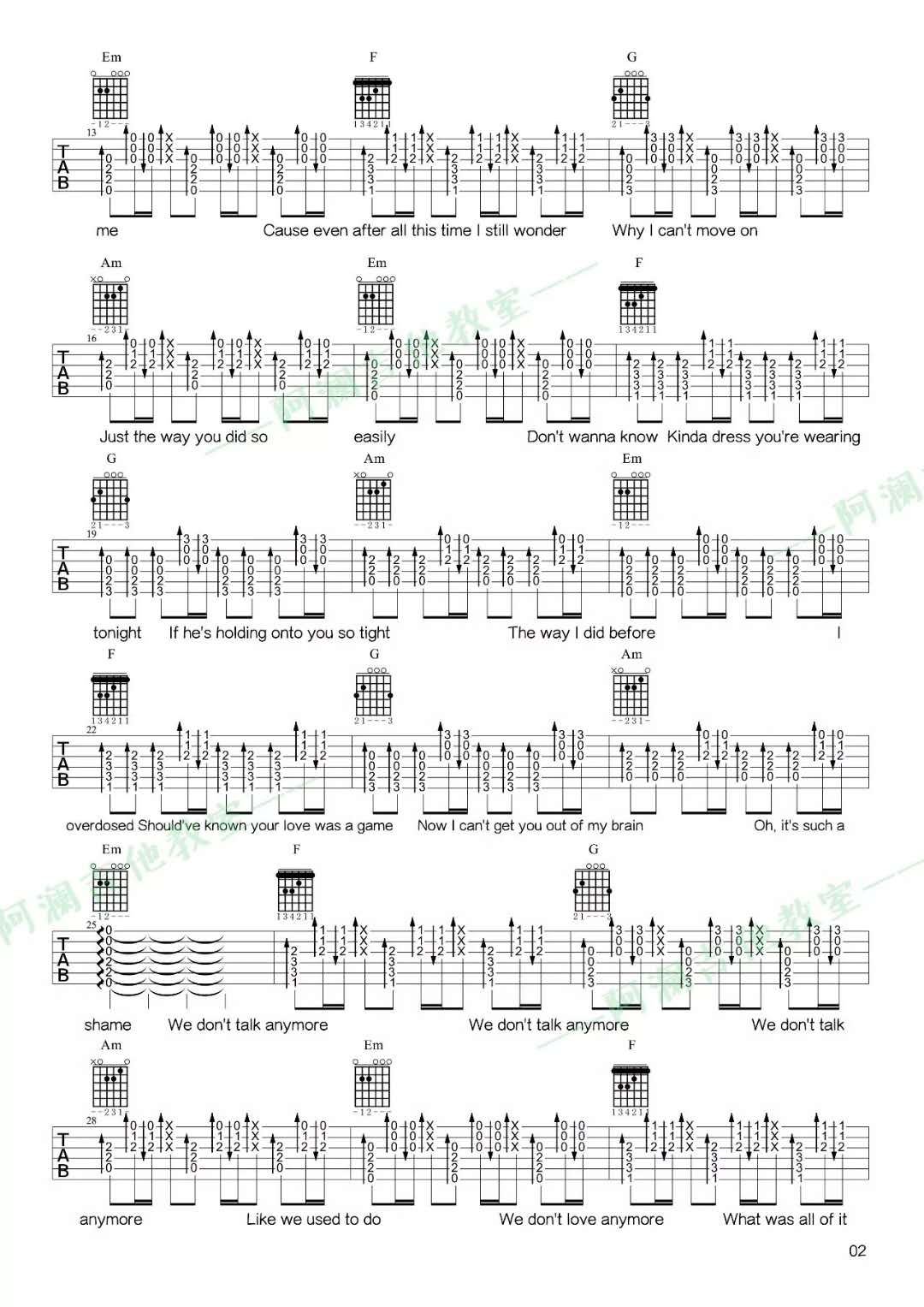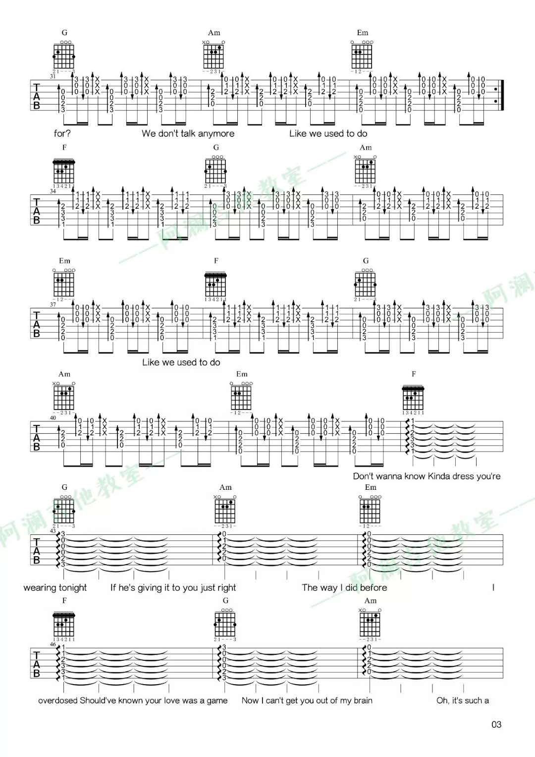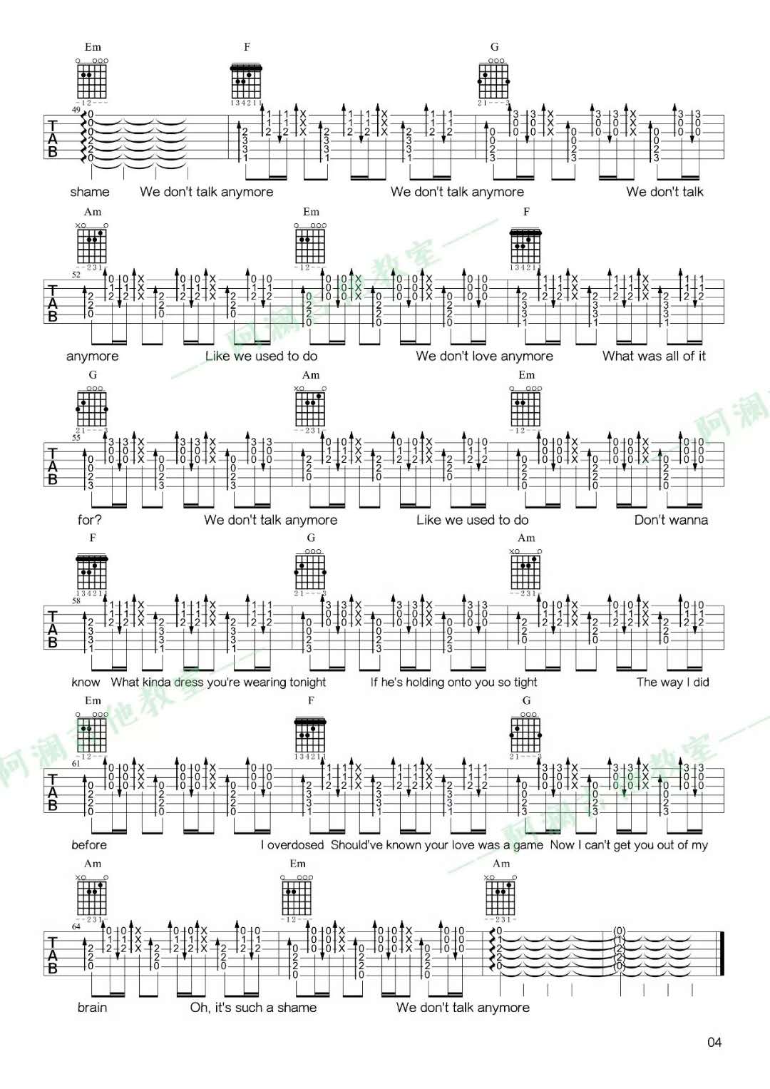 当前位置:琴谱网>吉他弹唱>We Dont Talk Anymore