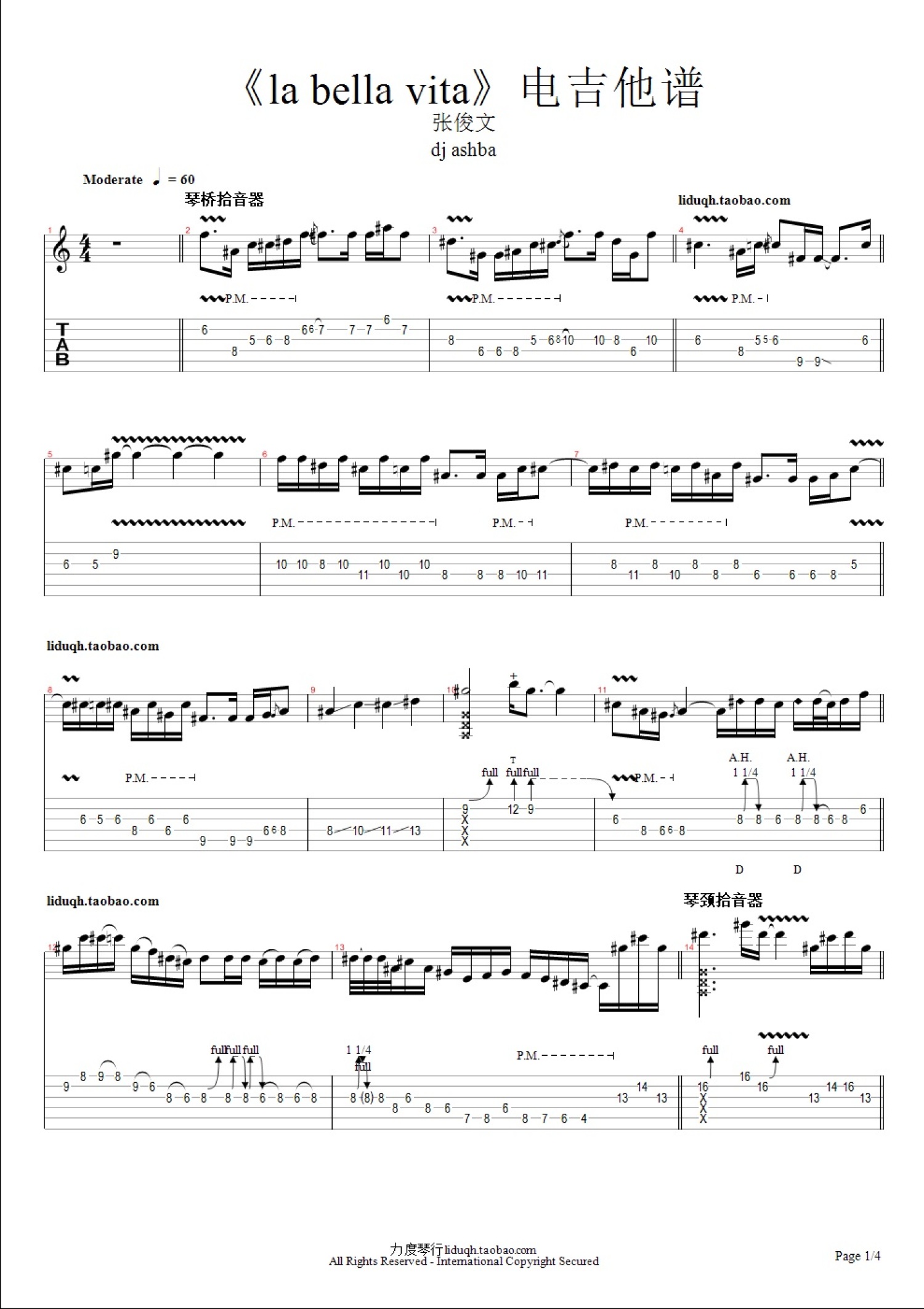 la bella vita吉他谱 - 张俊文 - 电吉他谱