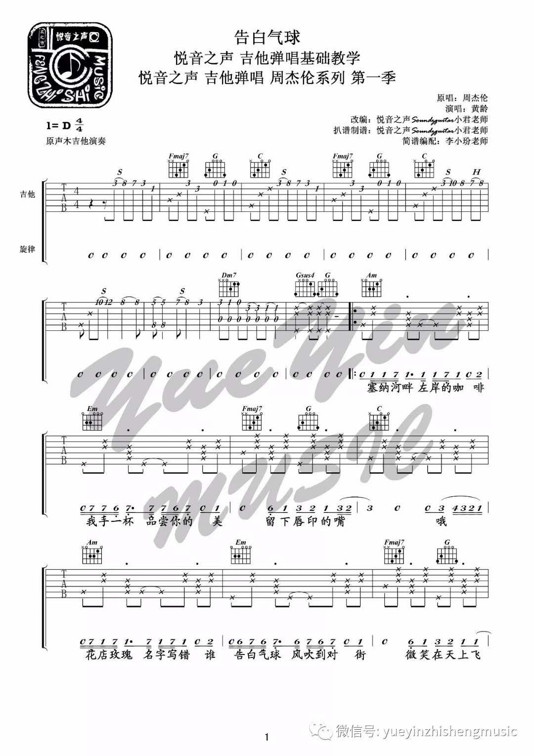 告白气球吉他谱 - 周杰伦 - D调吉他弹唱谱