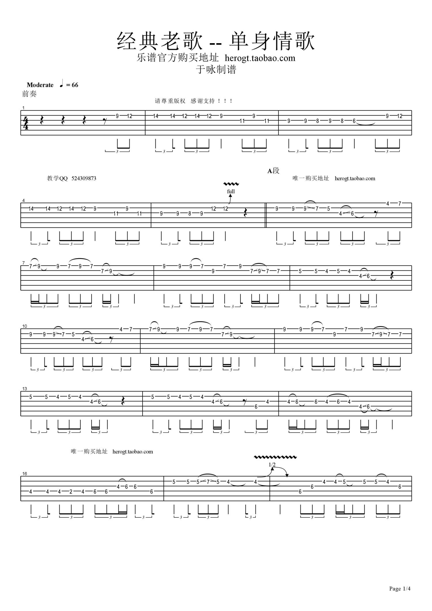 当前位置:琴谱网>电吉他谱>单身情歌