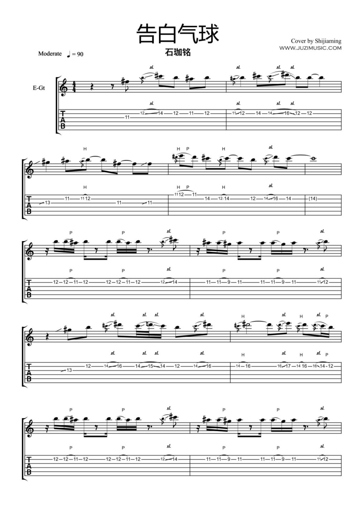 告白气球吉他谱 - 石珈铭 - 电吉他谱
