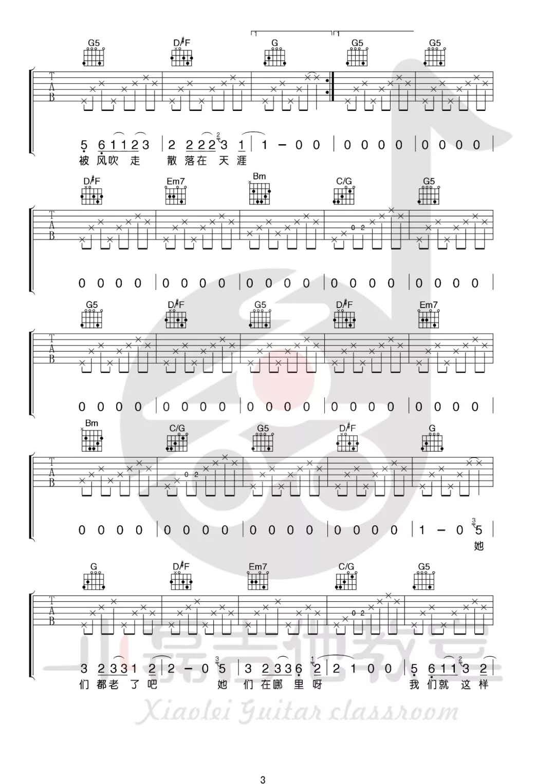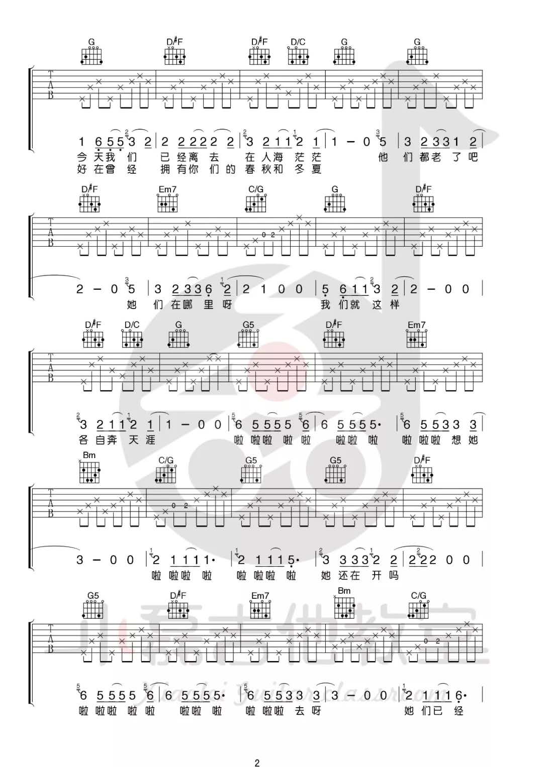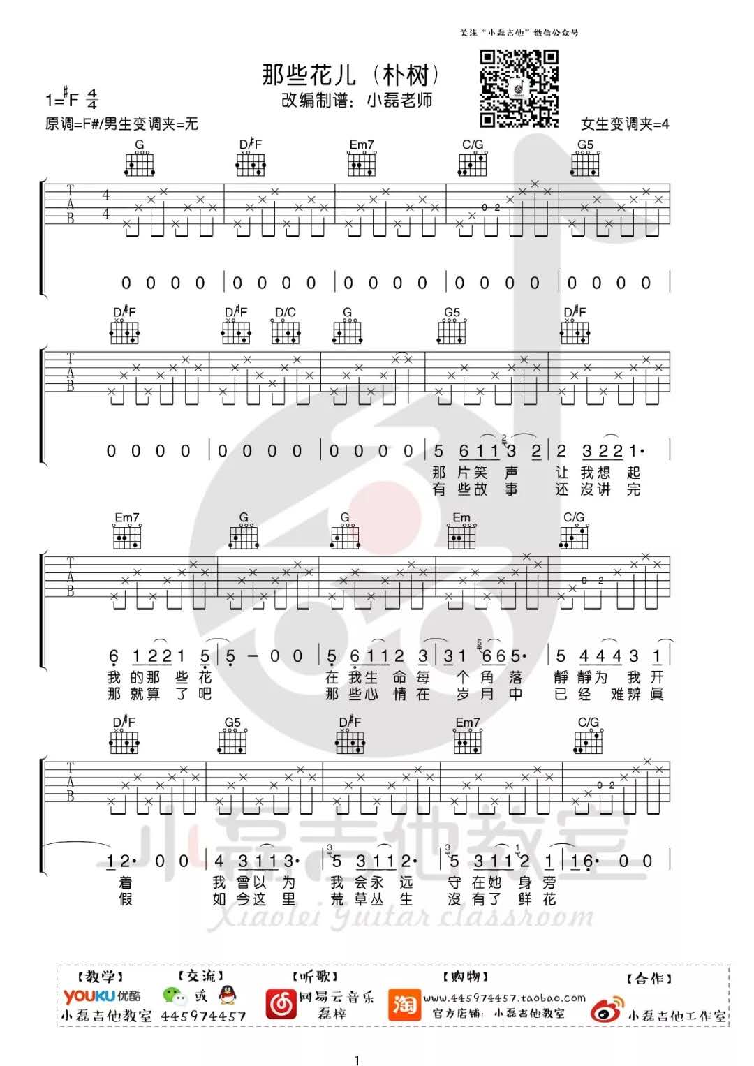 曲谱介绍: 朴树《那些花儿》吉他弹唱谱,采用F调指法编配,共有4张高清图谱。