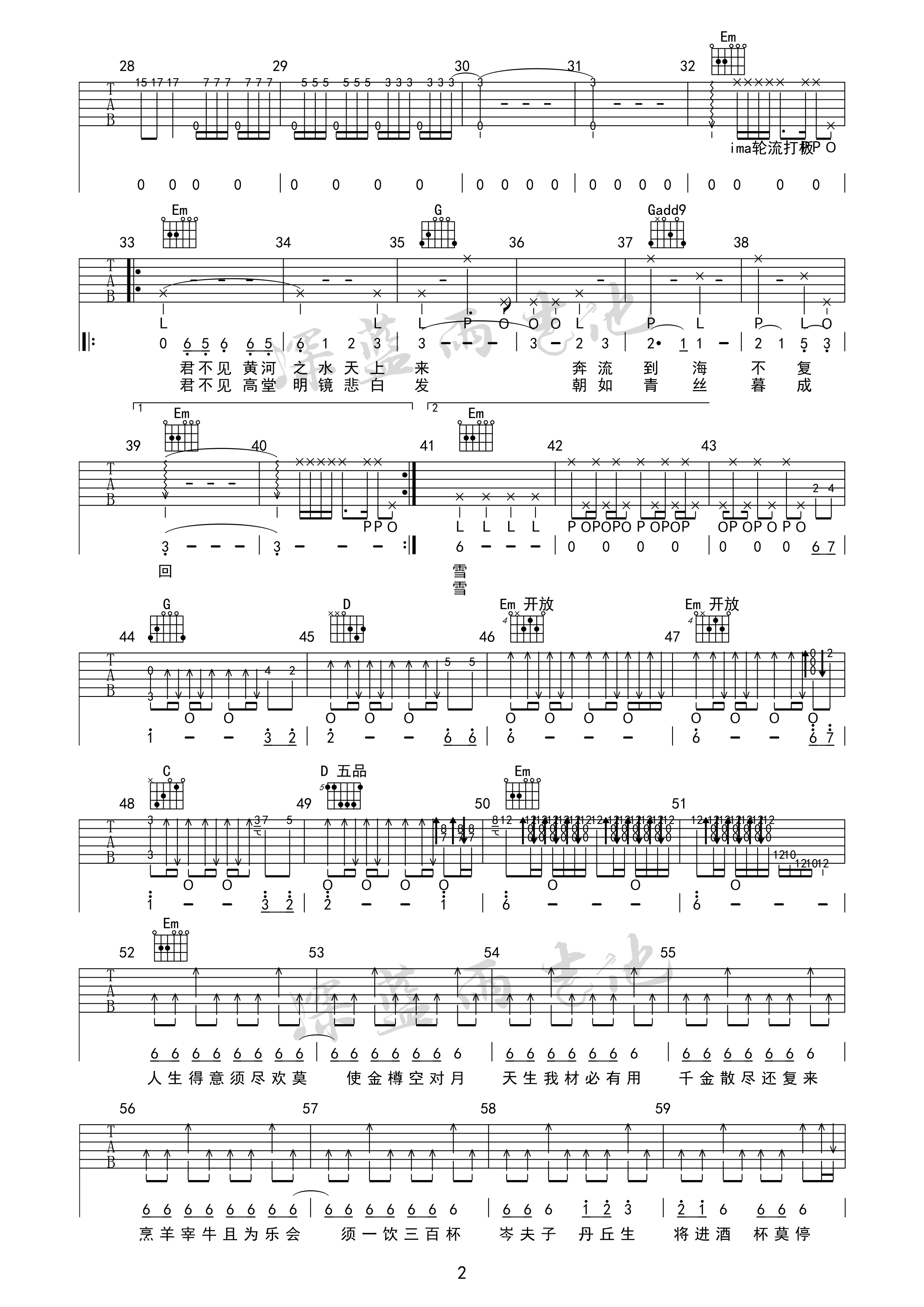 当前位置:琴谱网>吉他弹唱>将进酒 演奏版