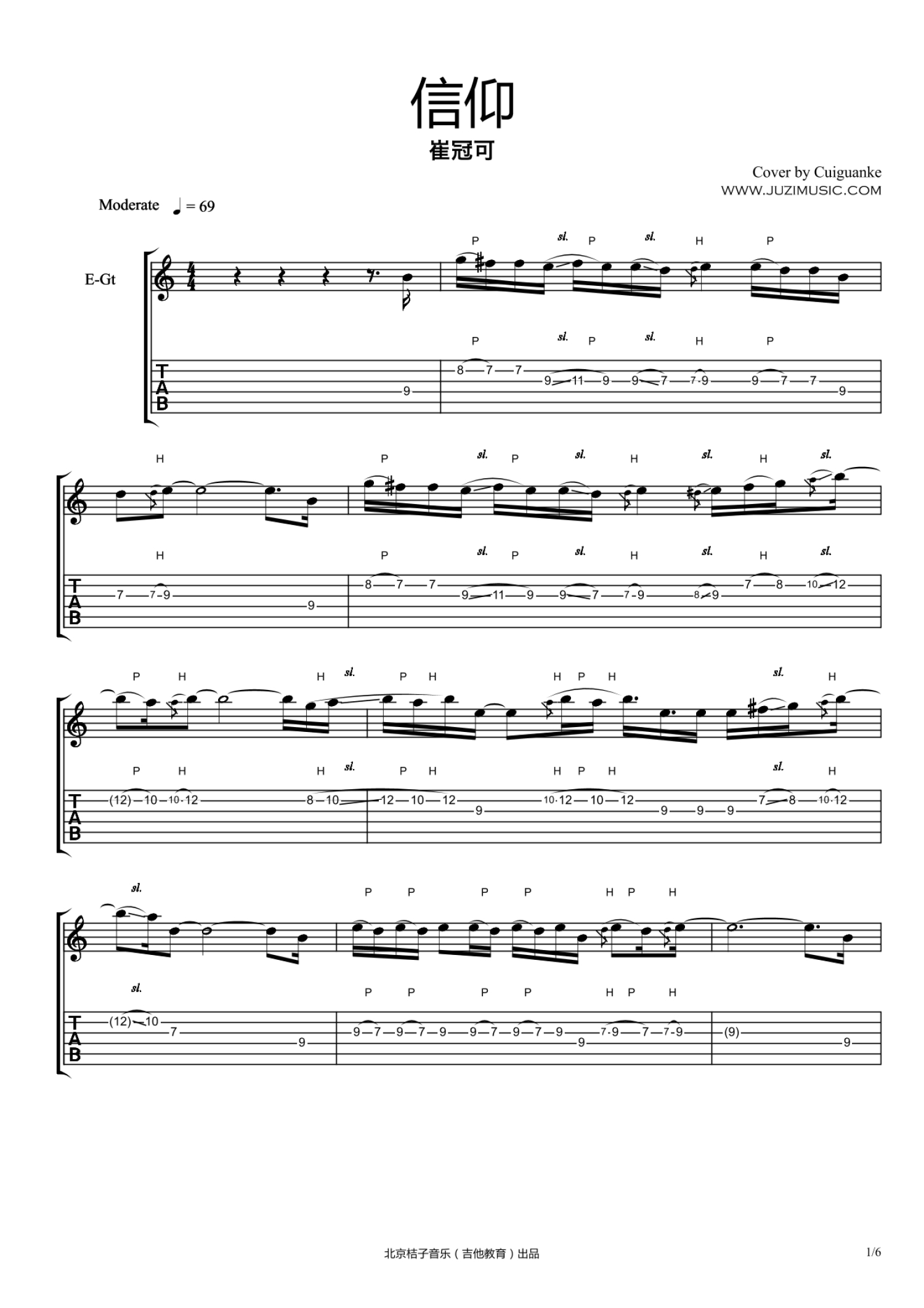 信仰吉他谱 - 崔冠可 - 电吉他谱
