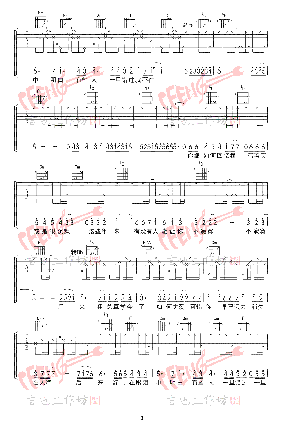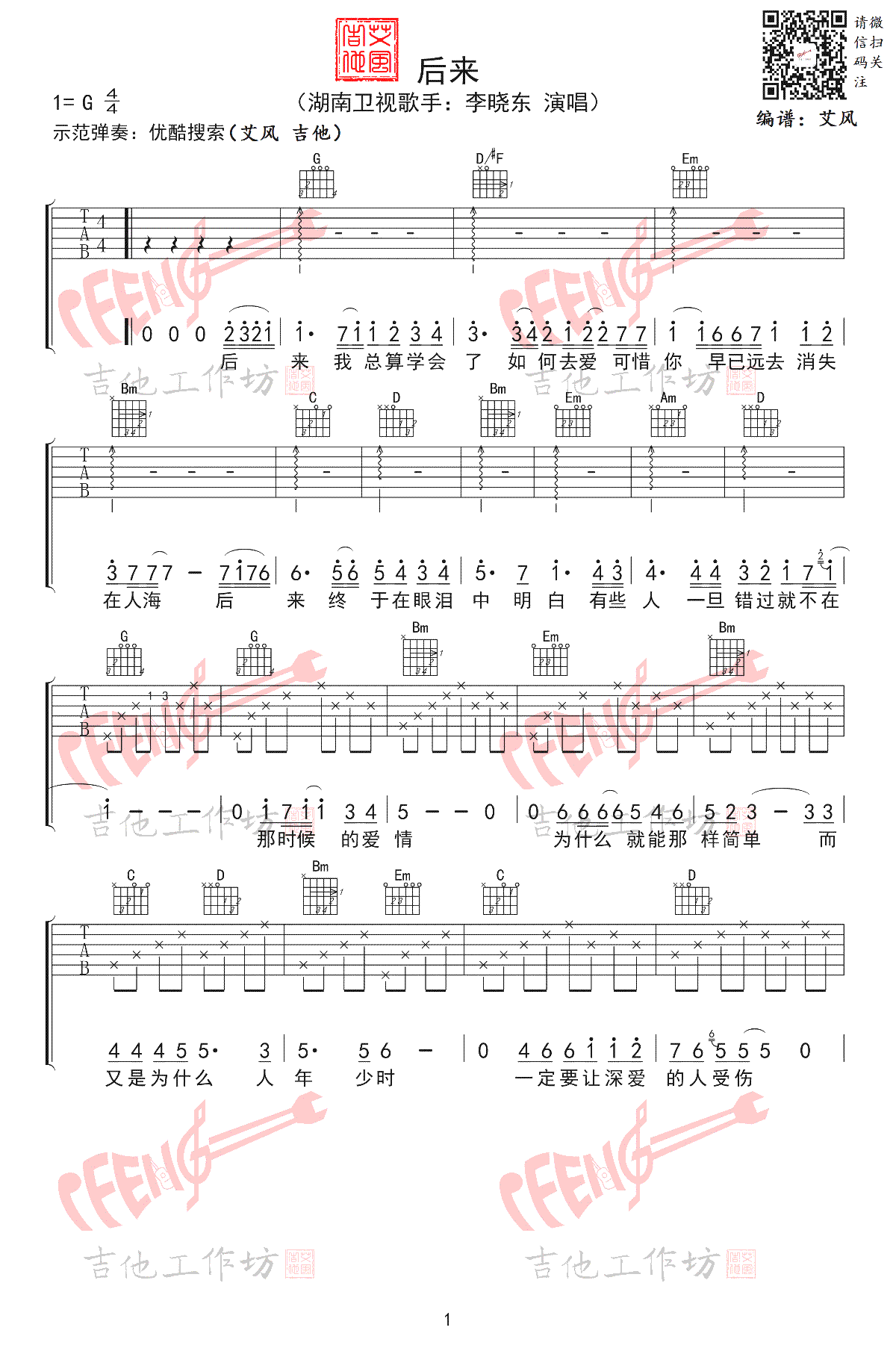 后来吉他谱 - 李晓东 - G调吉他弹唱谱