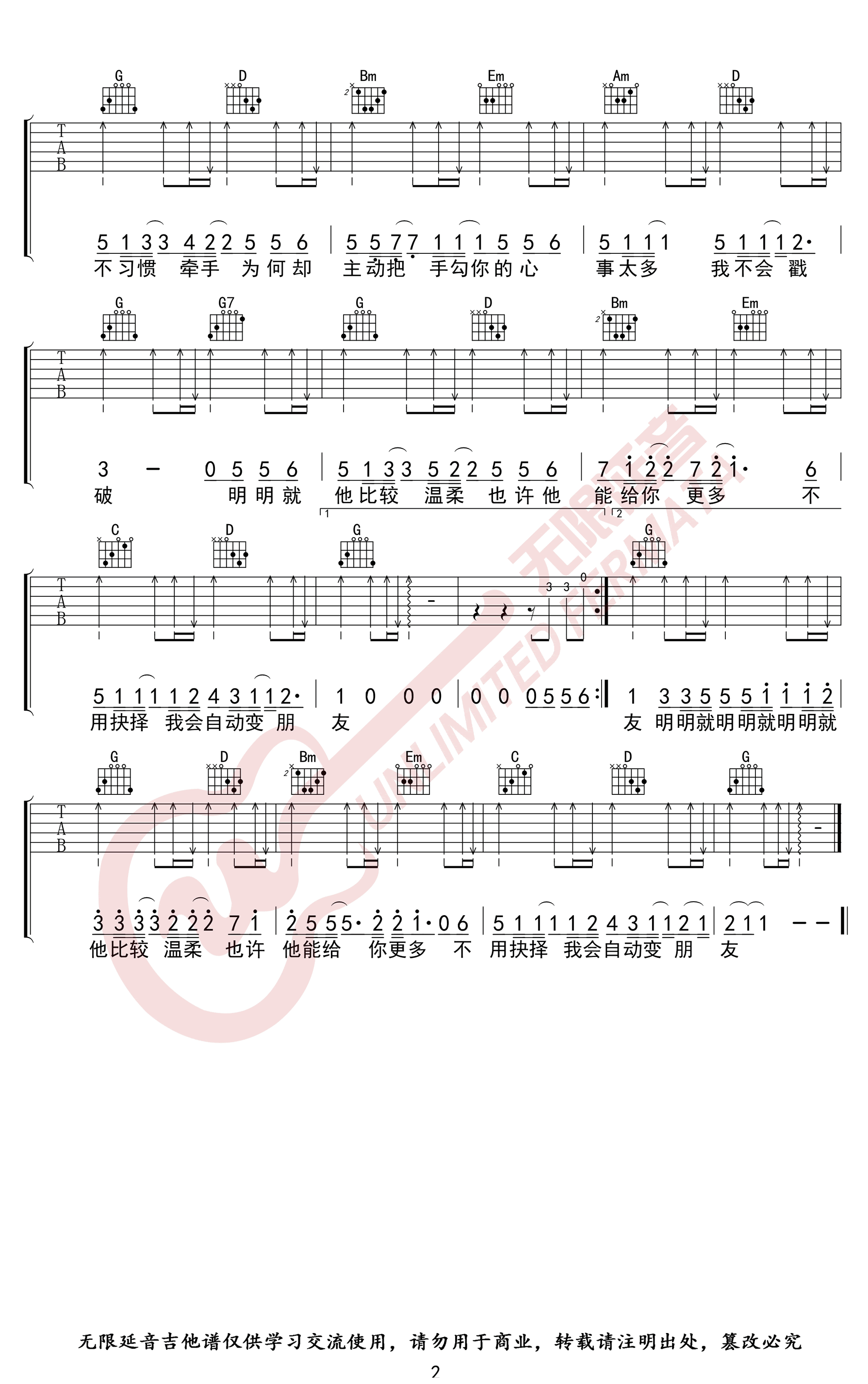 曲谱介绍: 吉他谱介绍:明明就吉他谱,周杰伦演唱的一首歌曲,4/4拍的节奏,这首歌曲的原调为A调,这里曲谱采用了G调指法进行编配,演唱时夹变调夹2品可回到原调,也可根据个人实际嗓音情况选择。曲谱由琴谱网更新上传,共2张高清图片弹唱吉他谱例,来源于@无限延音编配出品。其实有时喜欢一首歌就是会先喜欢上它的旋律,就像是一个人爱上另一个人,往往会先爱上另一个人的外表,然后再会去进一步了解内在,这歌也是这样,喜欢这首再去了解歌词,发现这首歌有着作为备胎的无奈:会自动变朋友···