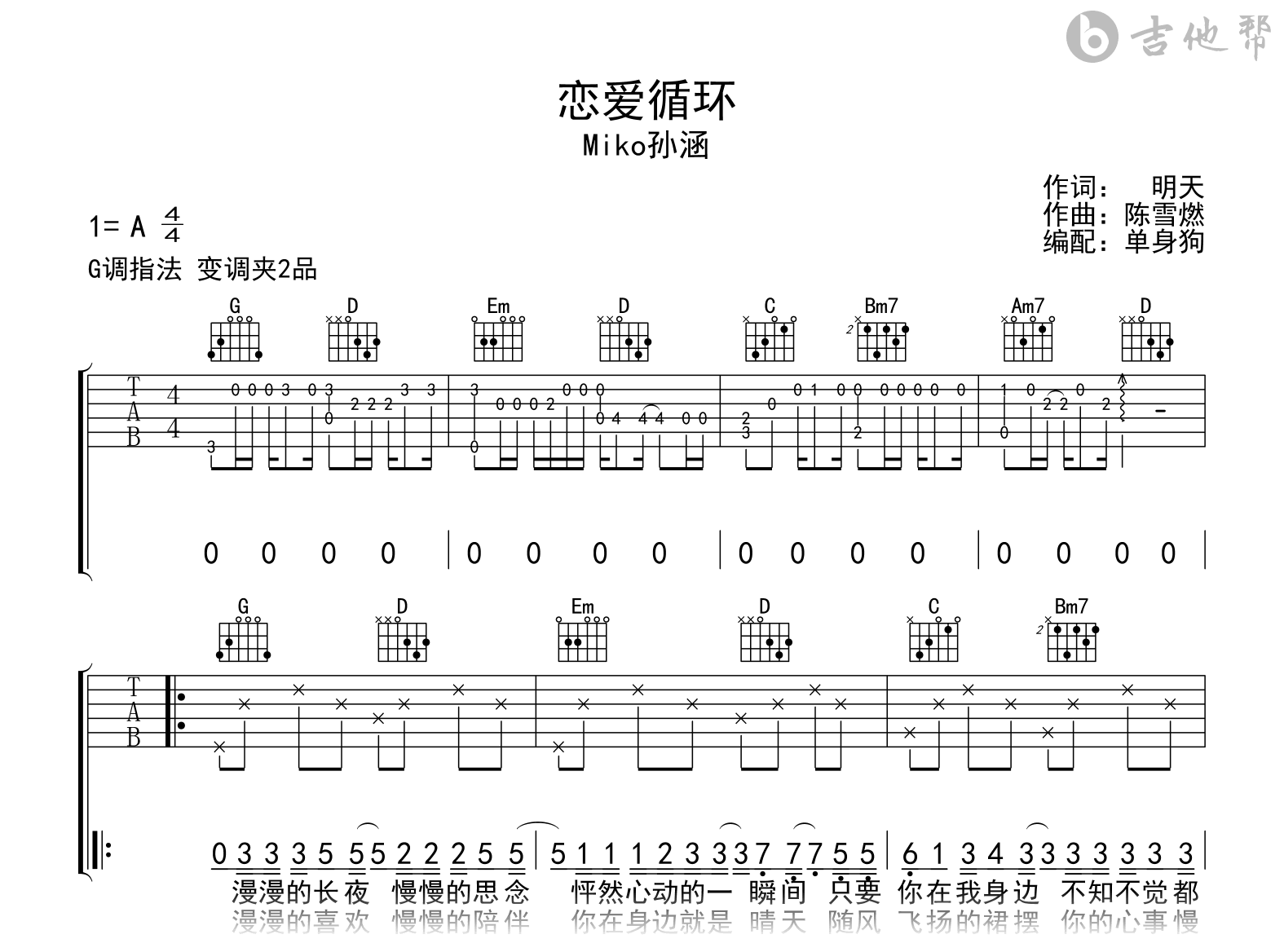 恋爱循环吉他谱 - Miko孙涵 - G调吉他弹唱谱