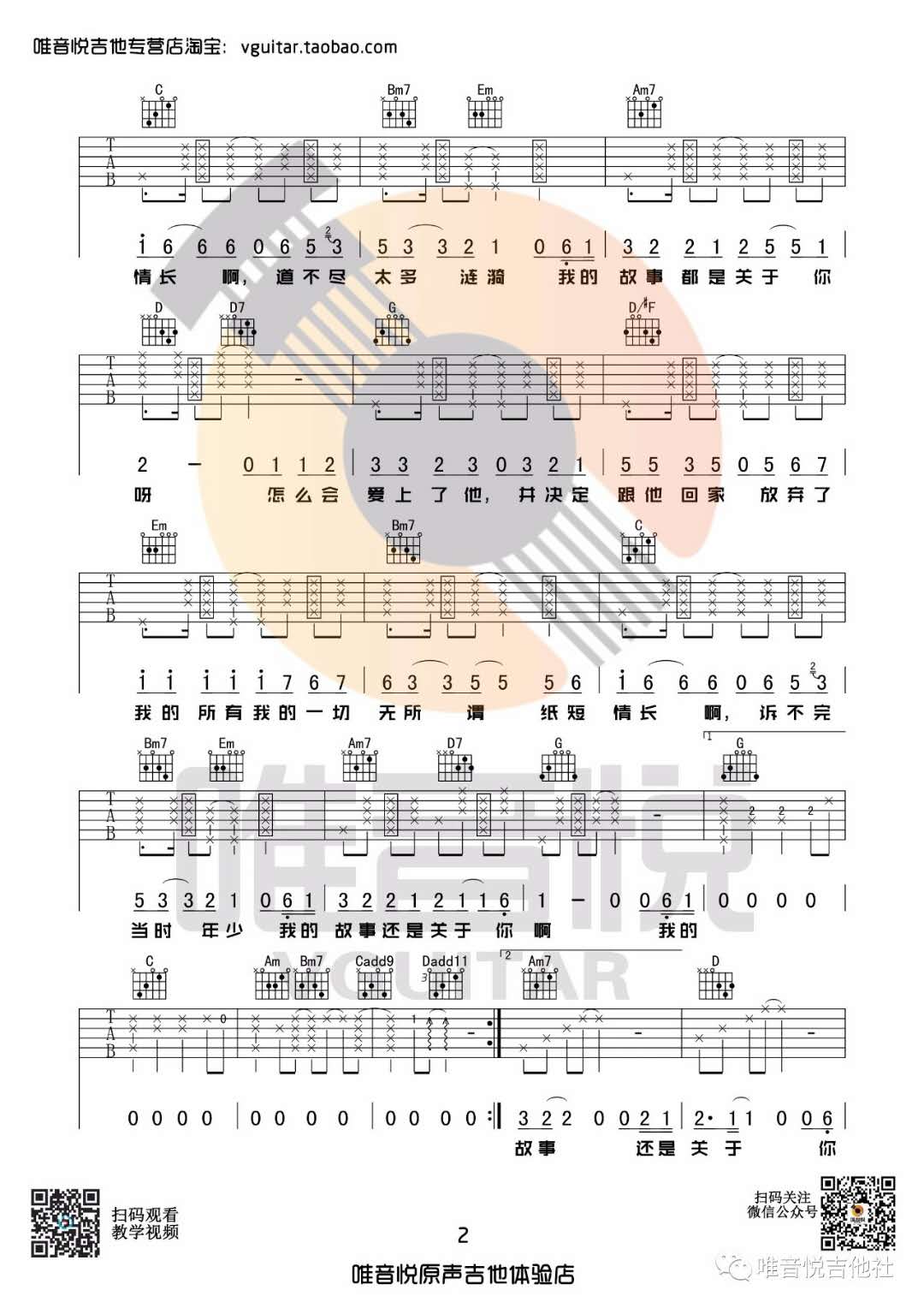 当前位置:琴谱网>吉他弹唱>纸短情长 完整版