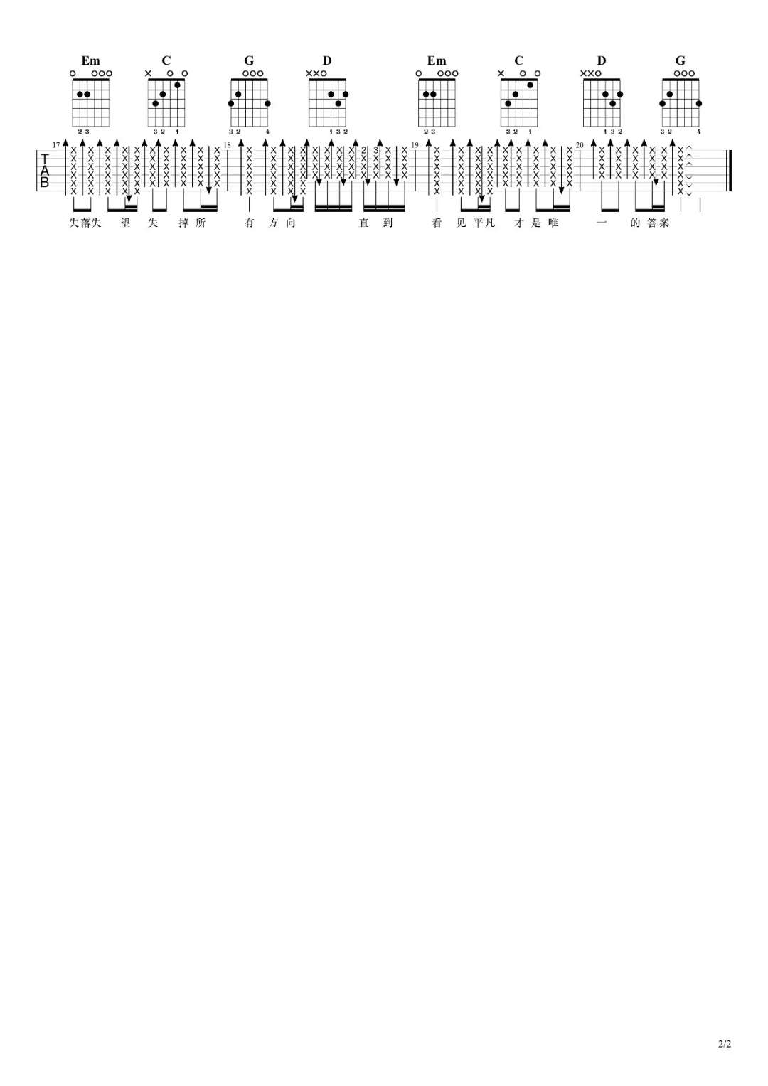 曲谱介绍: 打扰一下乐团《平凡之路》吉他弹唱谱,采用G调指法编配,共有2张高清图谱,免翻页排版设计。