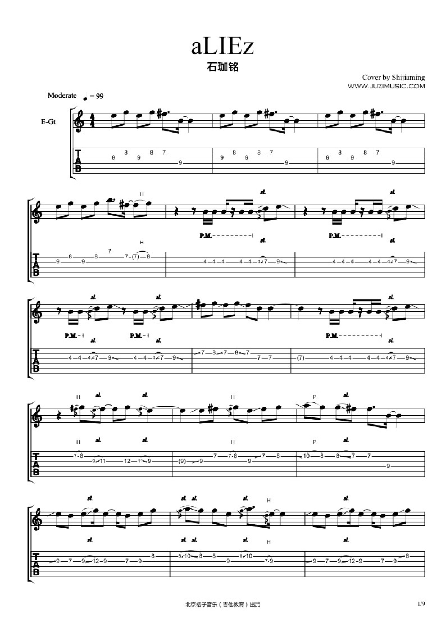 Aliez吉他谱 - 石珈铭 - 电吉他谱