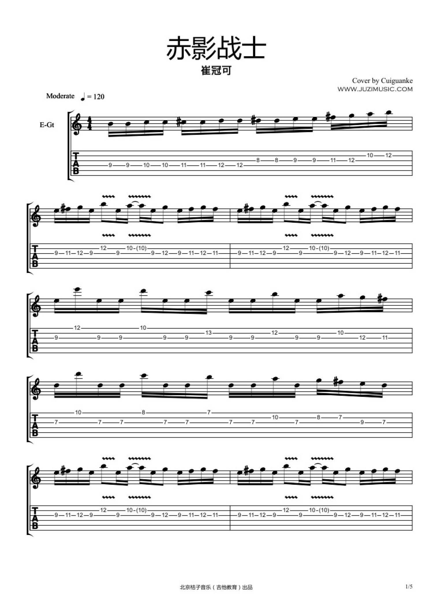 赤影战士吉他谱 - 崔冠可 - 电吉他谱